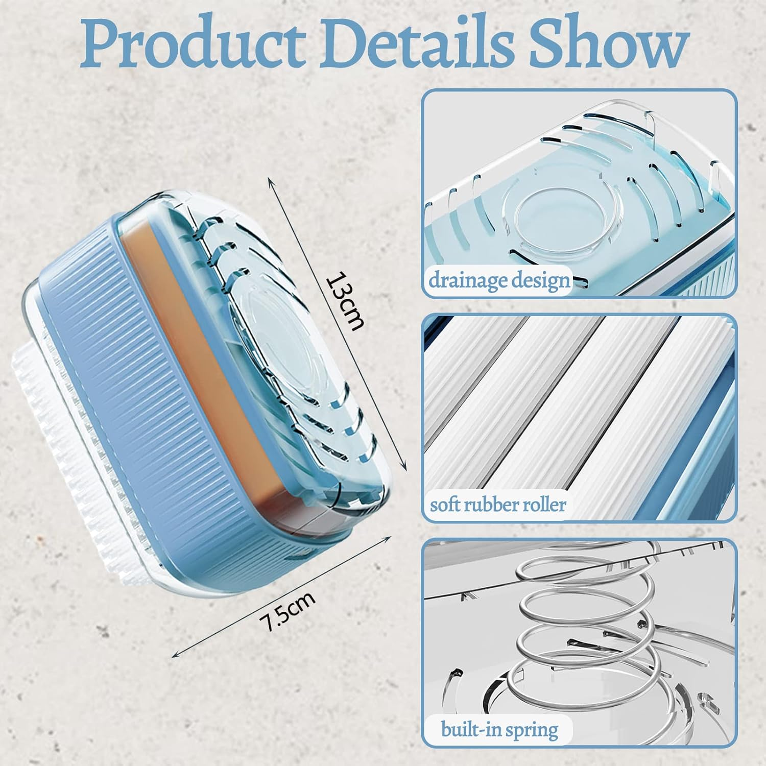 - 3-in-1 Design Soap Box Holder : Perfect combination of soap dispenser, sponge holder, drip tray and brush.Soap saver with cleaning and lathering function, innerspring with high elasticity and high contraction design, hollow design ventilation and drainage without stagnant water easy to clean, the top groove for soap.