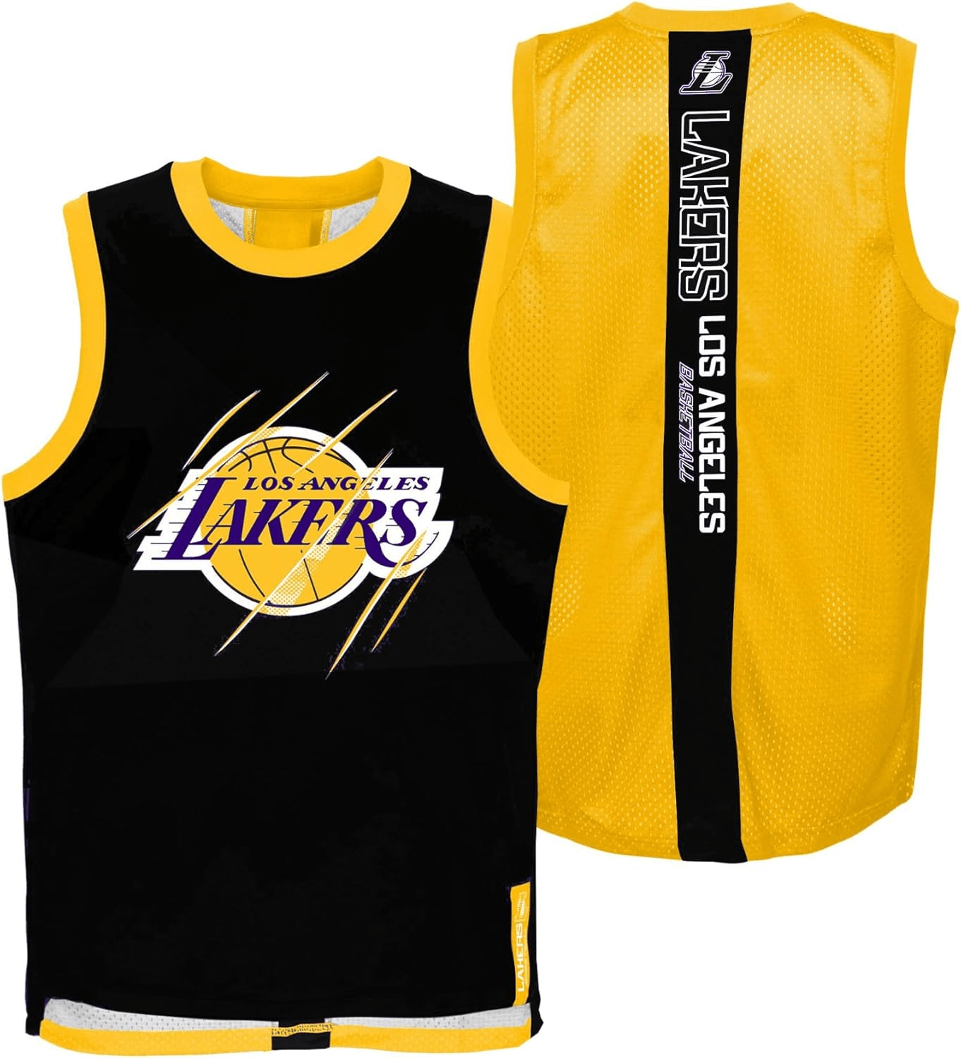 Elevate your young athlete’s game with the NBA Kids Youth 4-20 Primary Logo Alley-Oop Shooter Performance Jersey Tank Top. Expertly crafted from 100% high-performance polyester, this jersey guarantees both comfort and durability, making it ideal for spirited play on the court or casual wear at home. Its machine-washable feature ensures that it’s easy to maintain, while the vibrant screen-printed team logos prominently displayed on the front provide a striking representation of their favorite NBA team, the Los Angeles Lakers.