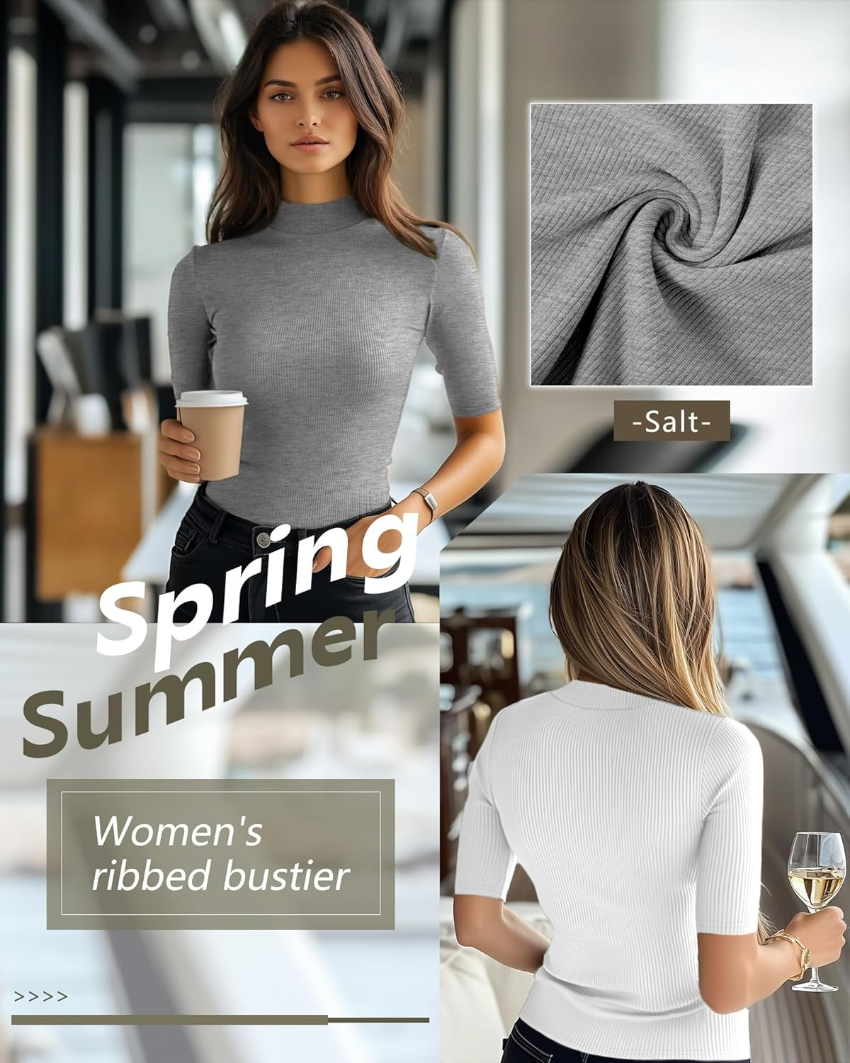 These mock turtleneck tees are crafted from high-quality fabric that not only enhances breathability during the warm summer months but also stretches comfortably to create a flattering silhouette. Ideal for layering or wearing alone, these tops make an excellent choice for both casual and semi-formal settings. Pair them with your go-to yoga pants or layer under a light jacket for a refreshing look that is as functional as it is fashionable.