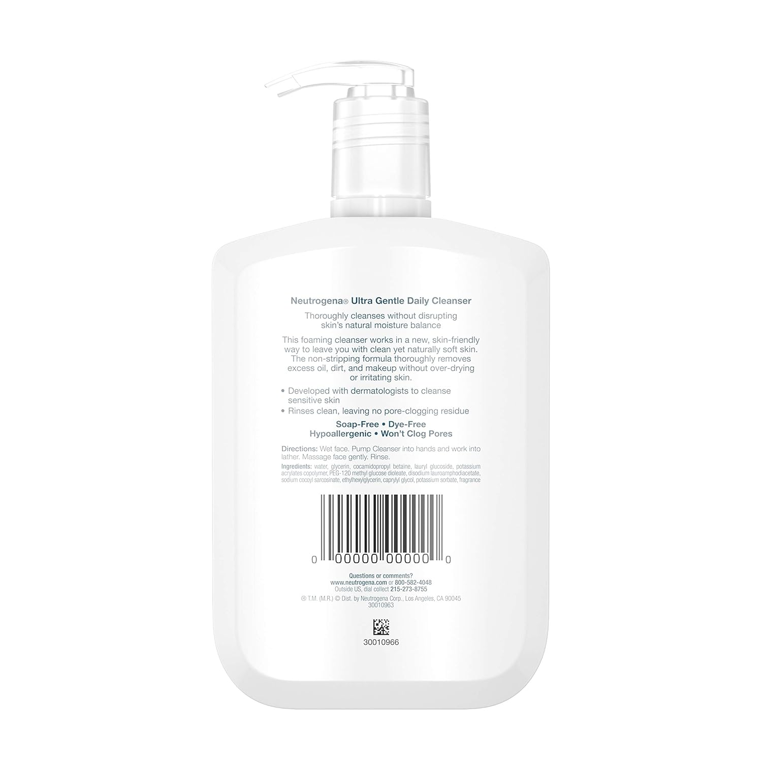 - Neutrogena Ultra Gentle Daily Cleanser is specifically formulated for sensitive skin, delivering a mild yet effective cleansing experience while safeguarding the skin’s natural moisture barrier.
