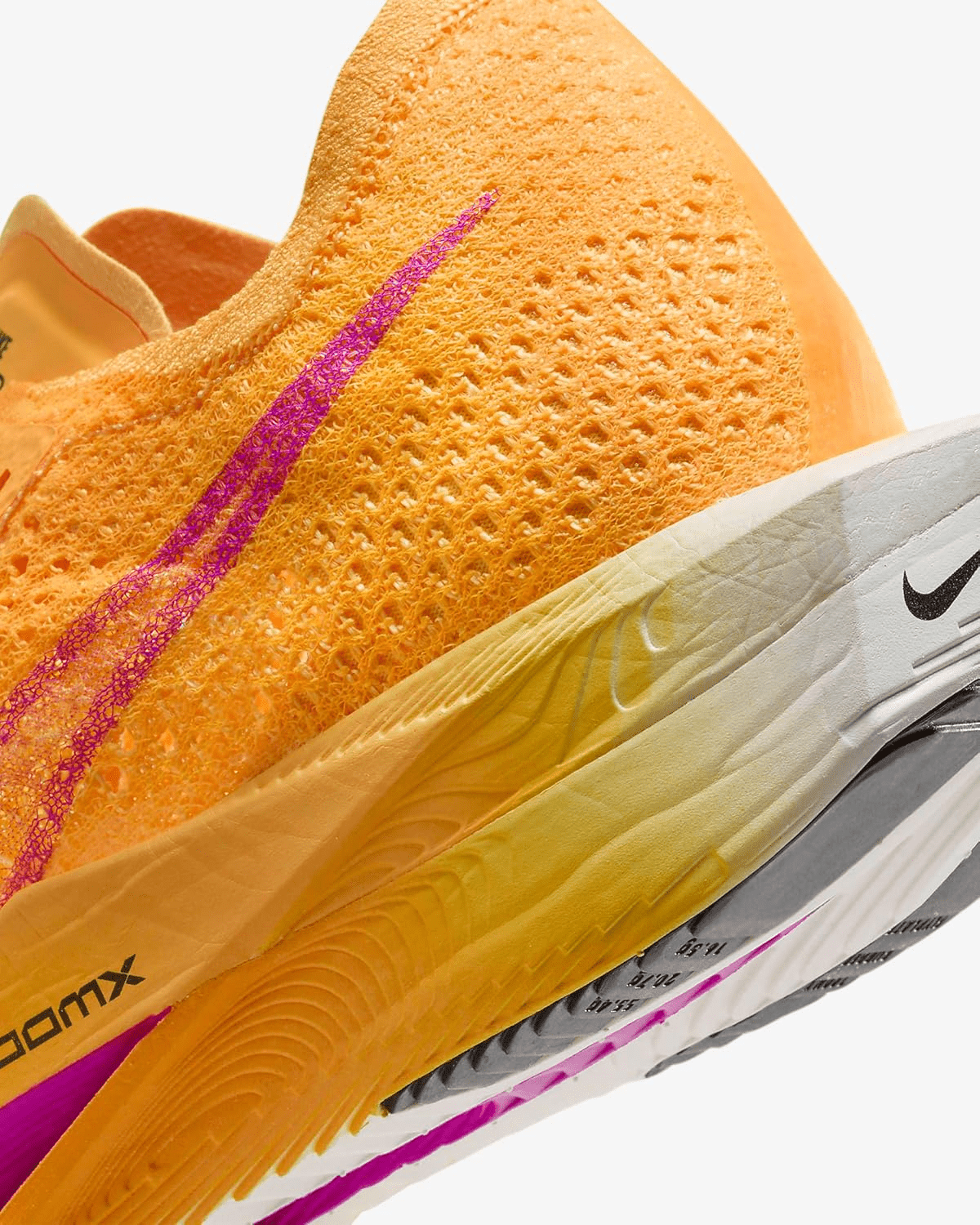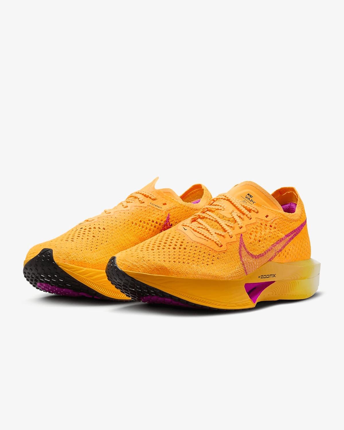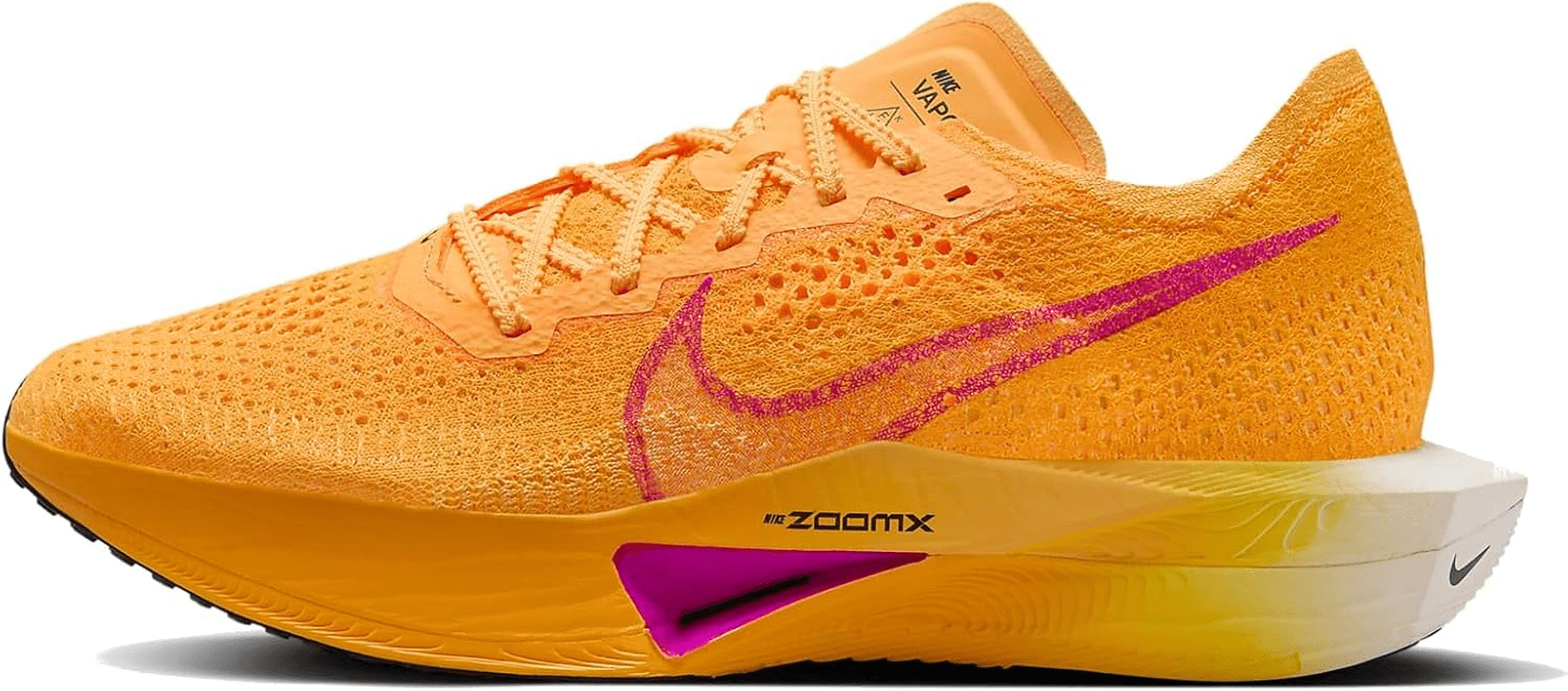 Experience the ultimate in performance and style with the Nike Vaporfly 3 Women's Road Racing Shoes. Designed for competitive runners who seek speed and efficiency, these shoes are your perfect companion on race day. The vibrant Laser Orange, Citron Pulse, Sail, and Hyper Violet colorway not only makes a bold statement but also inspires confidence as you chase your personal bests.