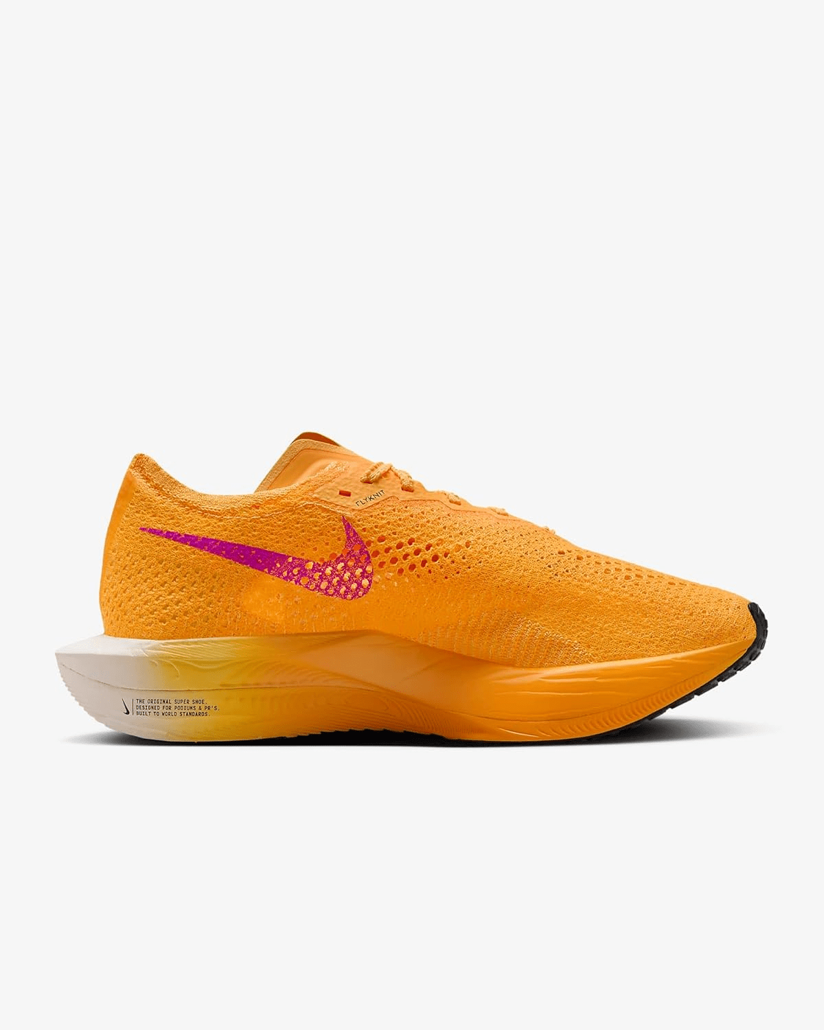Whether you're training for a marathon or competing in shorter races, these shoes are specifically designed for women who refuse to compromise on performance. With a snug fit that offers excellent support and stability, you will feel empowered to conquer any distance. Get ready to elevate your racing experience and make every mile count with the Nike Vaporfly 3.