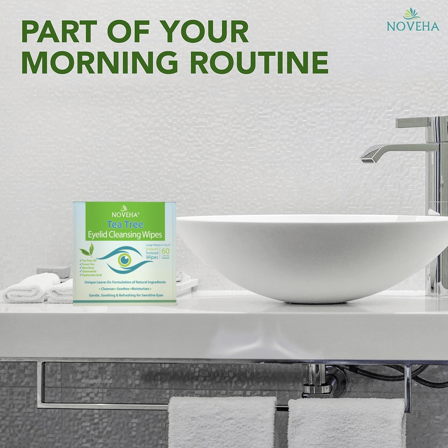 Be the first to review “NOVEHA 60Pcs Tea Tree Oil Eyelid & Lash Wipes | with Hyaluronic Acid, Green Tea & Chamomile for Blepharitis, Itchy & Stye Eyes, Individually Wrapped, Natural Eyelash Makeup Remover & Daily Cleanser” Cancel reply