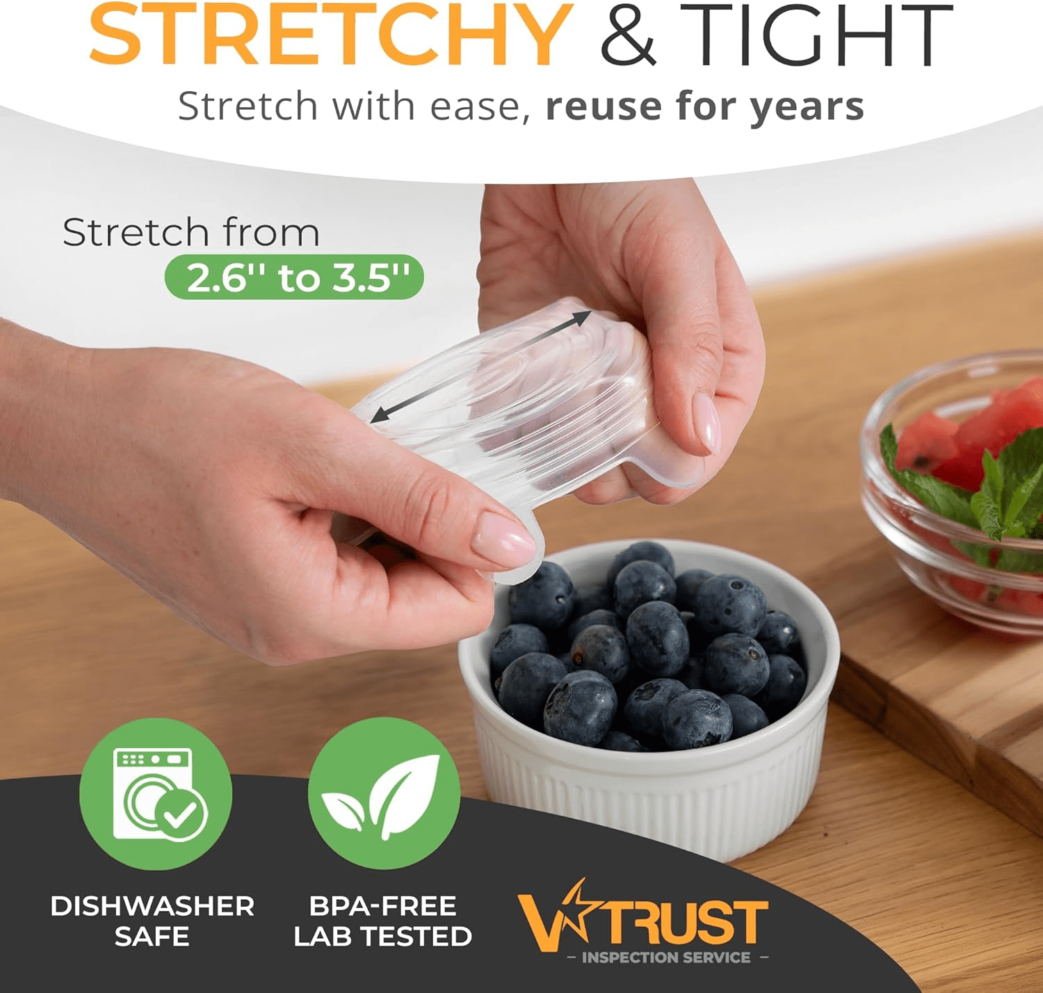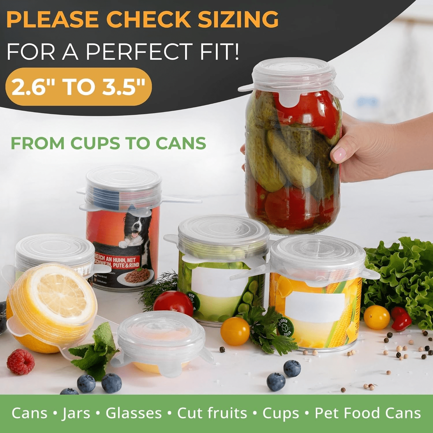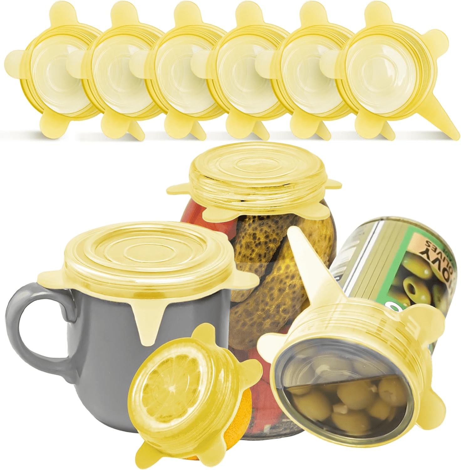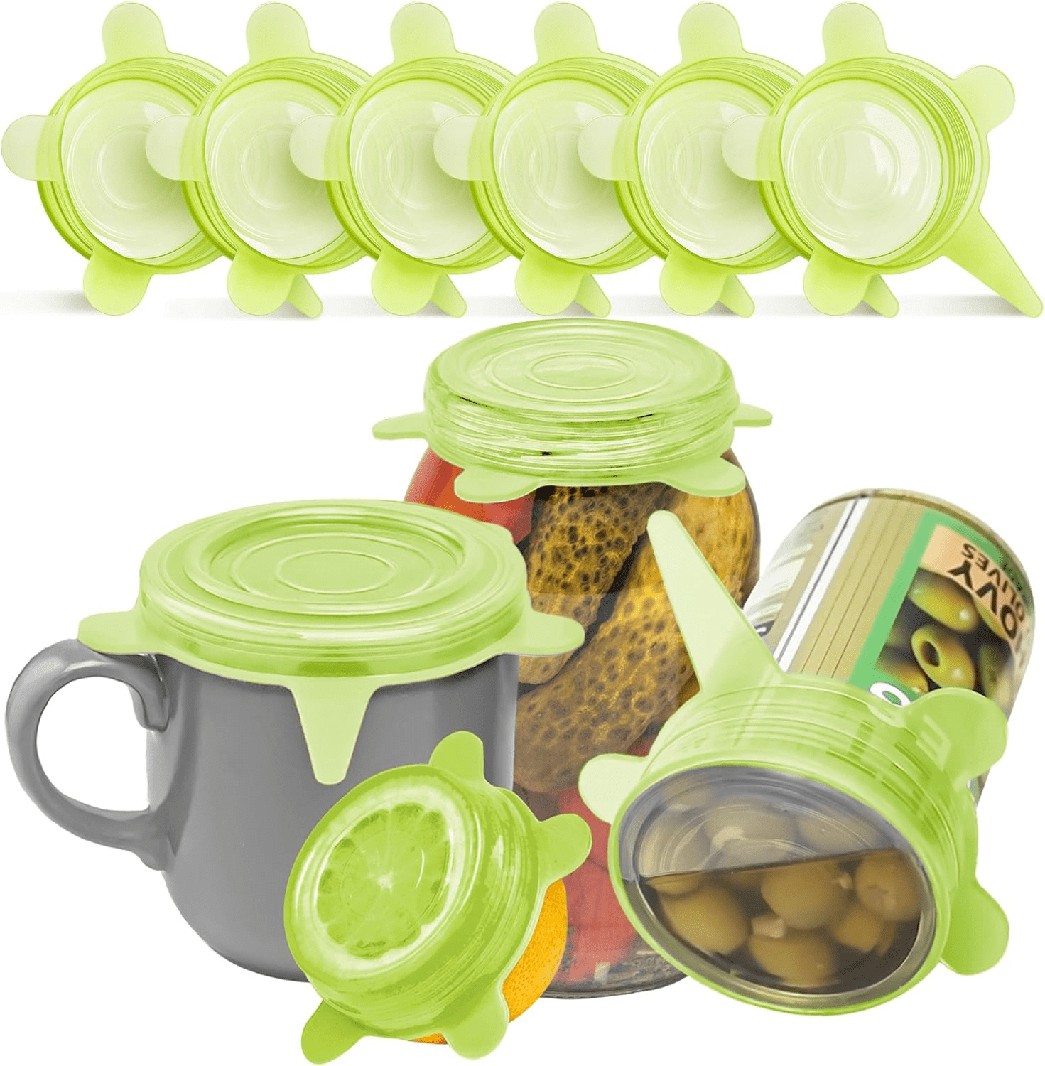 - CONVENIENCE: Simplify your kitchen routine with our stretchable silicone lids that effortlessly transform any container into an efficient food storage solution. This set features six versatile silicone stretch lids measuring 2.6 inches, which can expand to fit containers up to 3.5 inches, making it easy to cover a variety of bowls, cups, and jars.