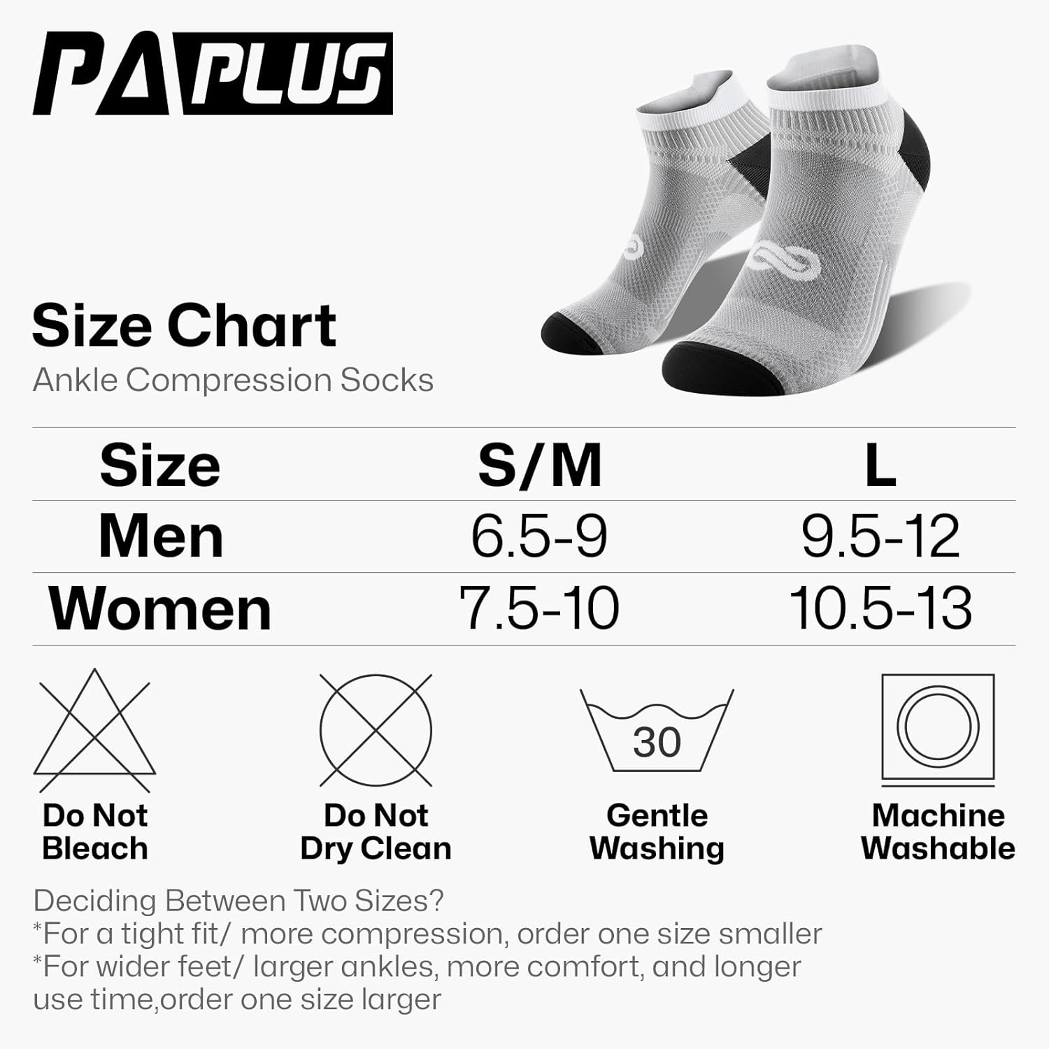 These compression socks are engineered to deliver targeted support to the ankle area, promoting improved blood circulation and reducing fatigue during physical activities. They can be used by athletes during training sessions or by individuals who spend long hours on their feet, providing much-needed relief and preventing injuries. With a size range of Large-X-Large, these socks cater to various foot sizes, ensuring a comfortable fit for everyone. Elevate your performance and comfort with the PAPLUS Ankle Compression Socks, designed to keep you moving with confidence.