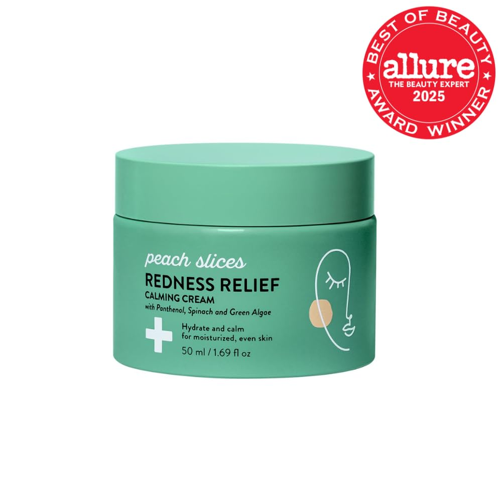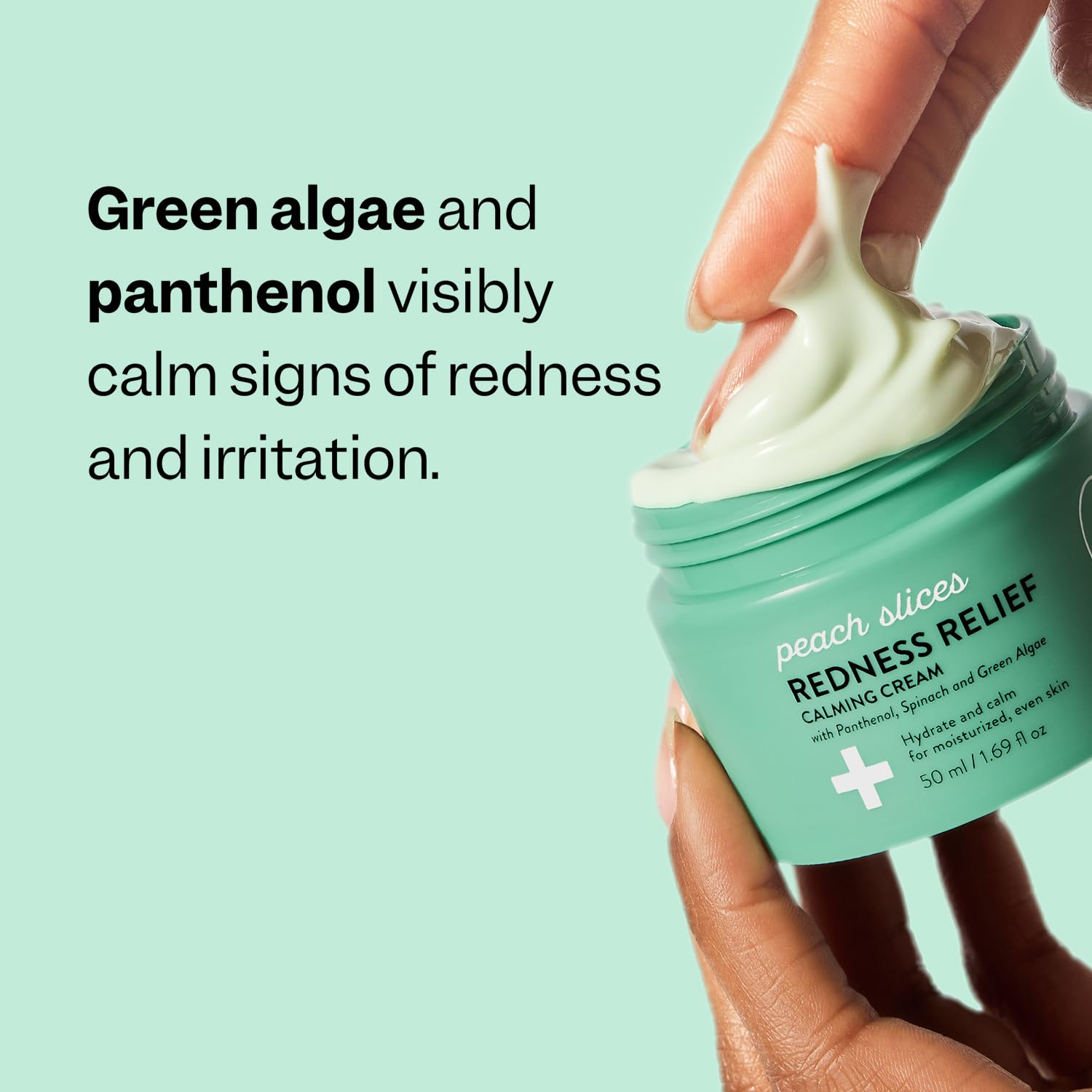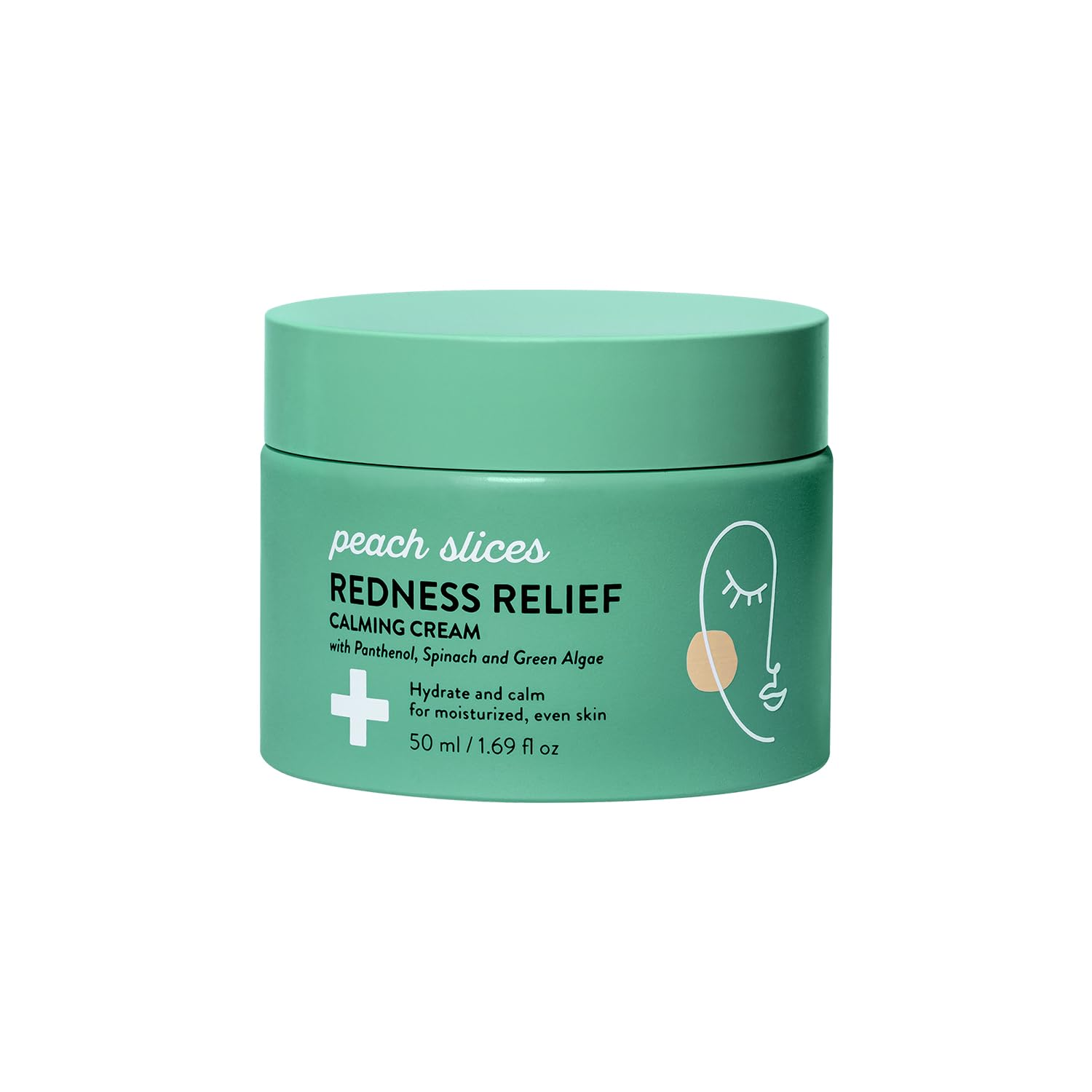 - Red, irritated skin can be frustrating, but Peach Slices Redness Relief Calming Cream provides a soothing solution. Formulated with powerful ingredients such as rhodomyrtus and turmeric root, this lightweight and silky cream rapidly alleviates irritation and redness, resulting in calm and corrected skin. Whether you’re dealing with occasional flare-ups or persistent redness, this cream is your go-to for achieving a balanced complexion.