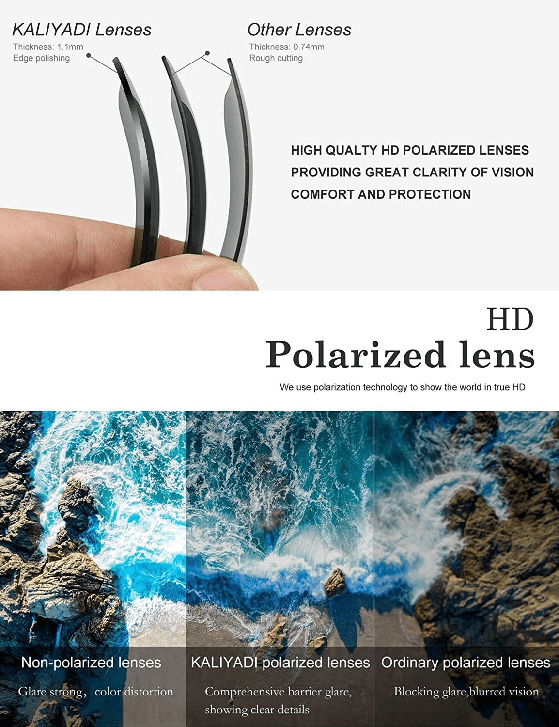 - ★ Experience Freedom with Every Wear â–¶ We understand that comfort is crucial in sunglasses, which is why we’ve crafted our frames from ultra-light materials. The shatterproof polarized lenses and smooth, polished edges ensure that you can wear them for extended periods without discomfort. With KALIYADI sunglasses, you can move freely and feel great, whether lounging at the beach, navigating the city, or enjoying outdoor activities.