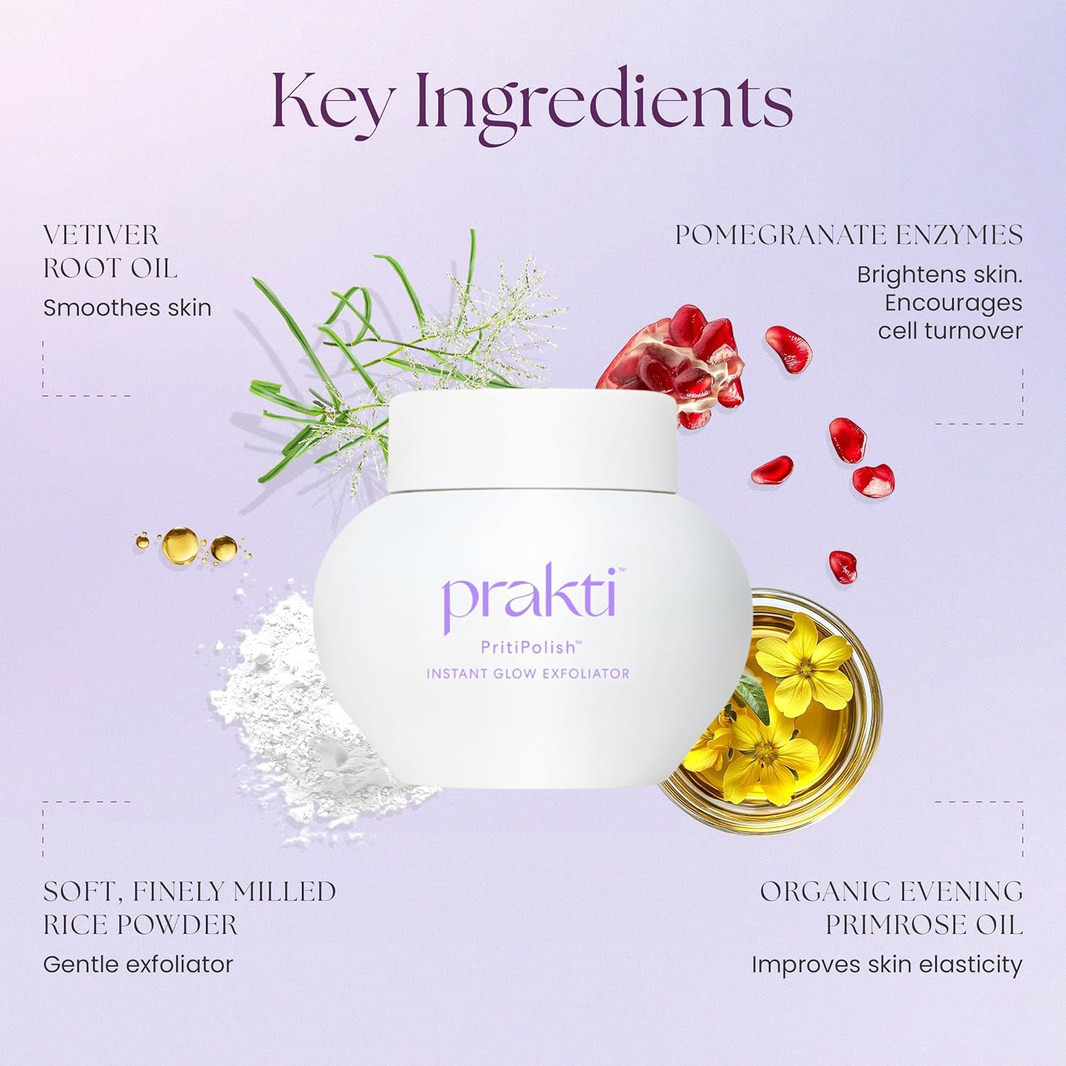 - Oryza Sativa Rice Powder: Polishes skin for a radiant, glowing complexion.
