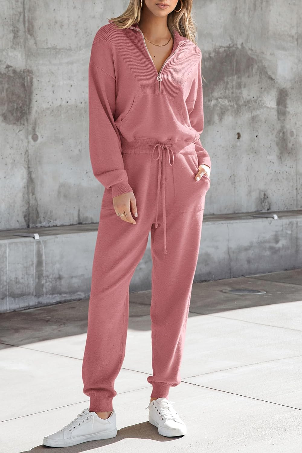Available in an elegant pink hue, this ensemble is designed for easy layering, allowing you to transition from day to night effortlessly. The adjustable drawstring on the jogger pants ensures a custom fit while enhancing your comfort. Ideal for the fall and winter seasons, this outfit can be easily accessorized with sneakers or your favorite boots for a complete look. Experience the ultimate in loungewear with the PRETTYGARDEN Women’s 2 Piece Sweater Set, where style meets functionality.
