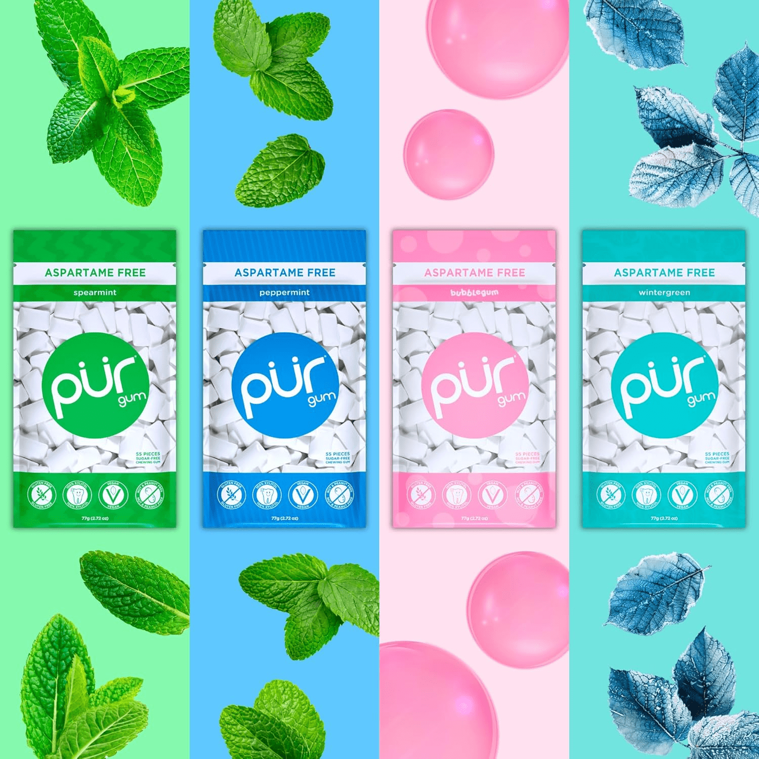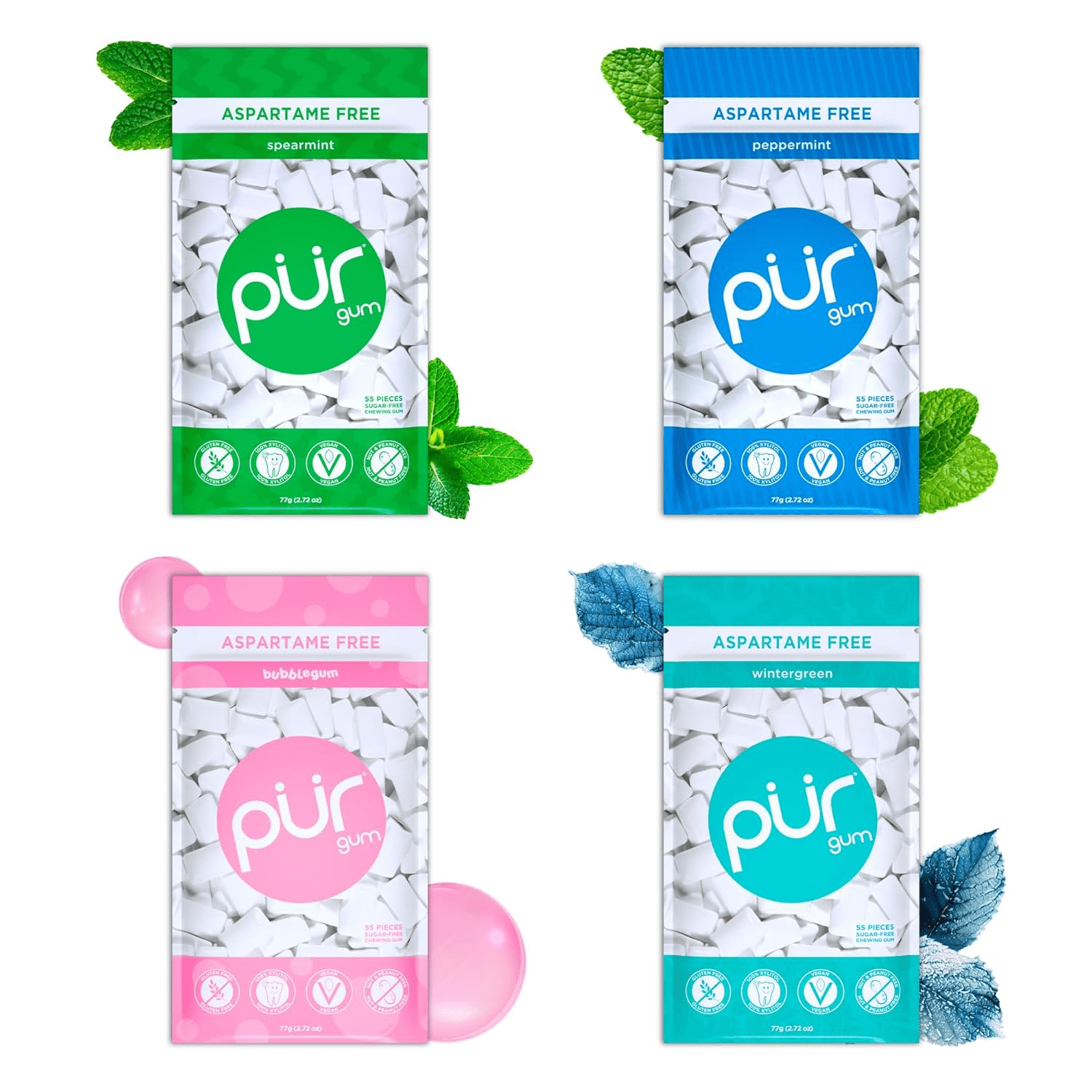 PUR Gum | Aspartame Free Chewing Gum | 100% Xylitol | Variety Pack – Spearmint, Peppermint, Bubblegum & Wintergreen, 55 Pieces (Pack of 4)