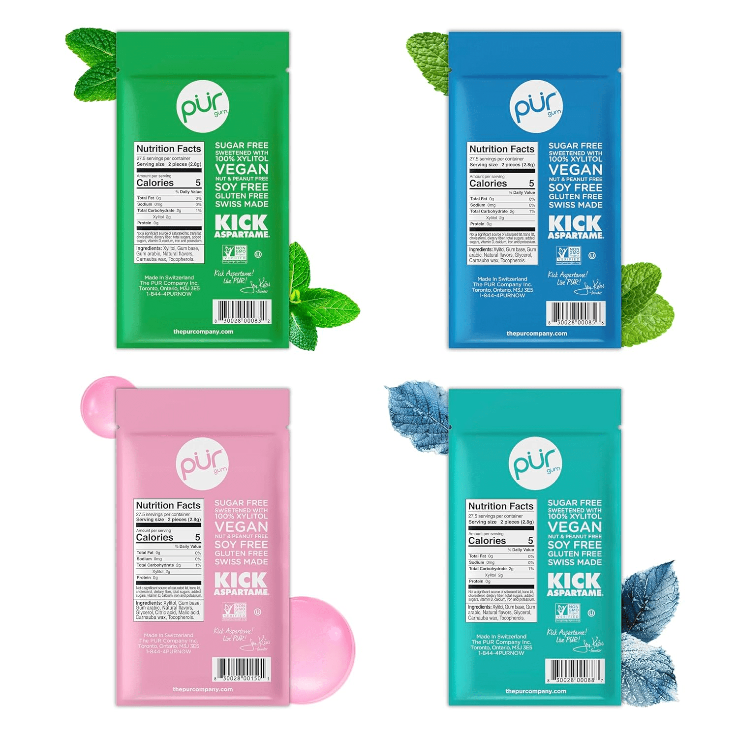 • VARIETY GUM BUNDLE: Experience the delightful selection of flavors with PUR’s Aspartame-free gum assortment. It includes four popular flavors packed in a convenient resealable bag, making it easy to indulge wherever you are.