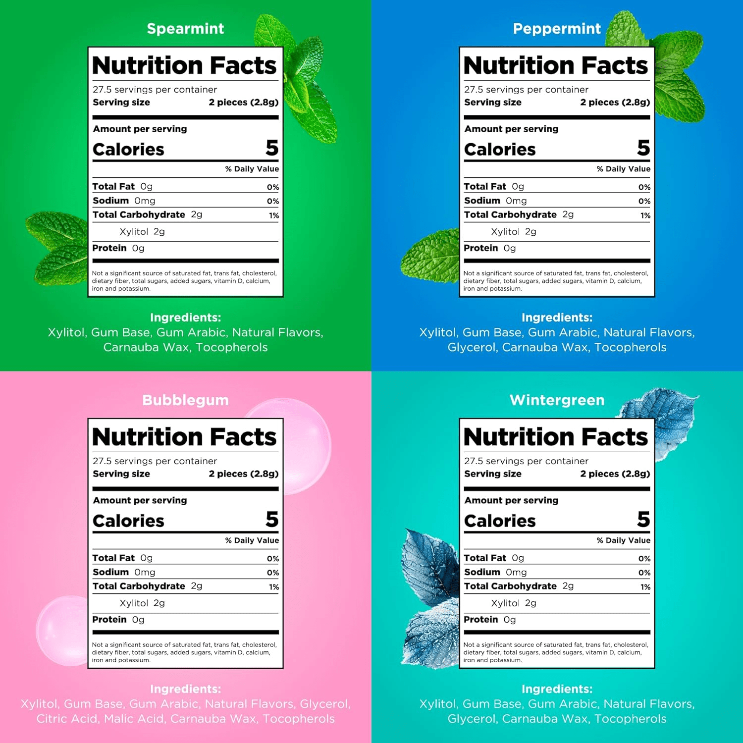 Naturally Sweetened with 100% Xylitol: Our gum is sweetened with sustainably sourced xylitol, offering the taste and texture of sugar while contributing to better oral health and cutting down on calories.