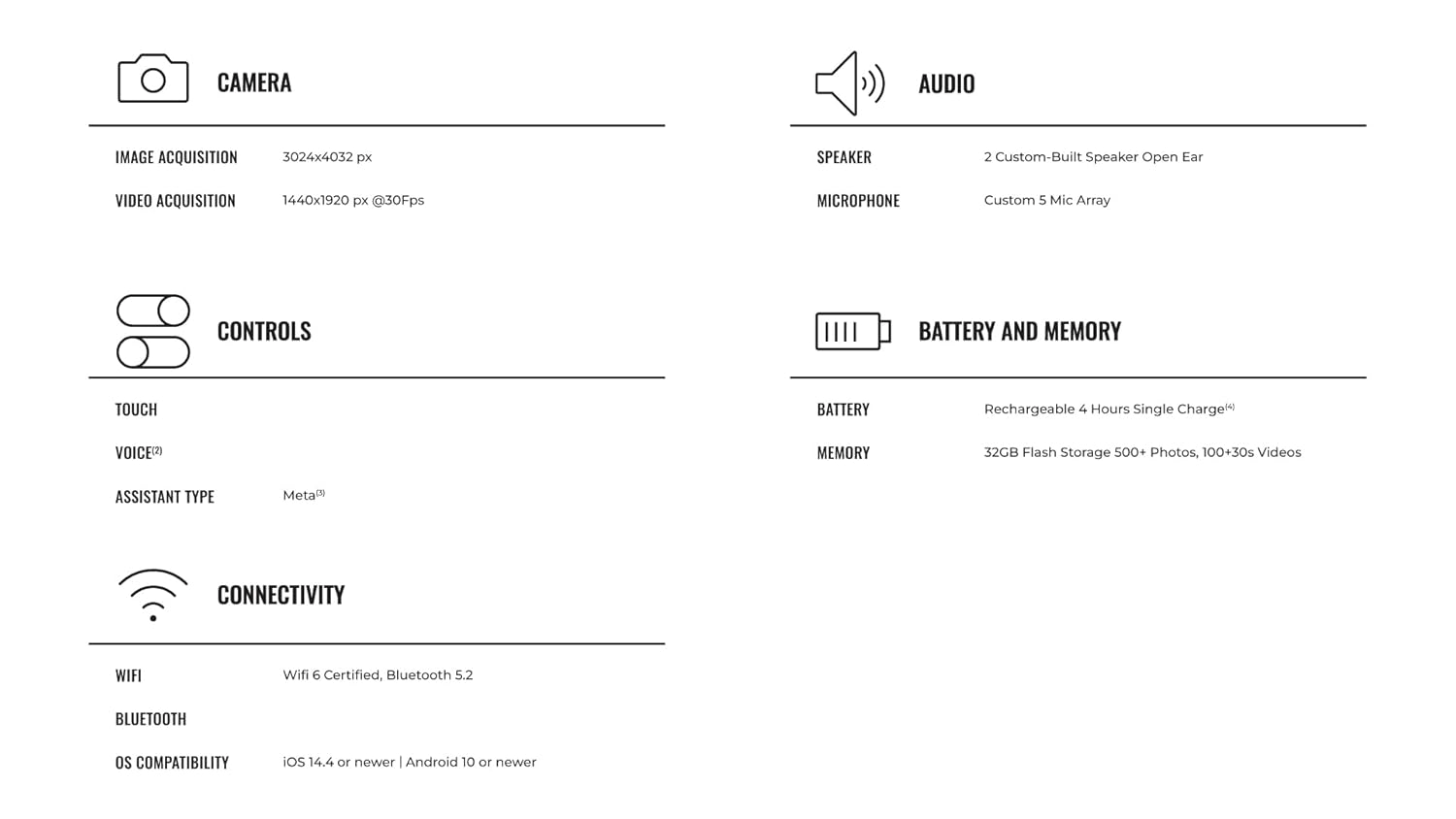 - CAPTURE WHAT YOU SEE AND HEAR HANDS-FREE – Capture exactly what you see and hear with an ultra-wide 12 MP camera and a five-mic system. Livestream it on Facebook and Instagram.