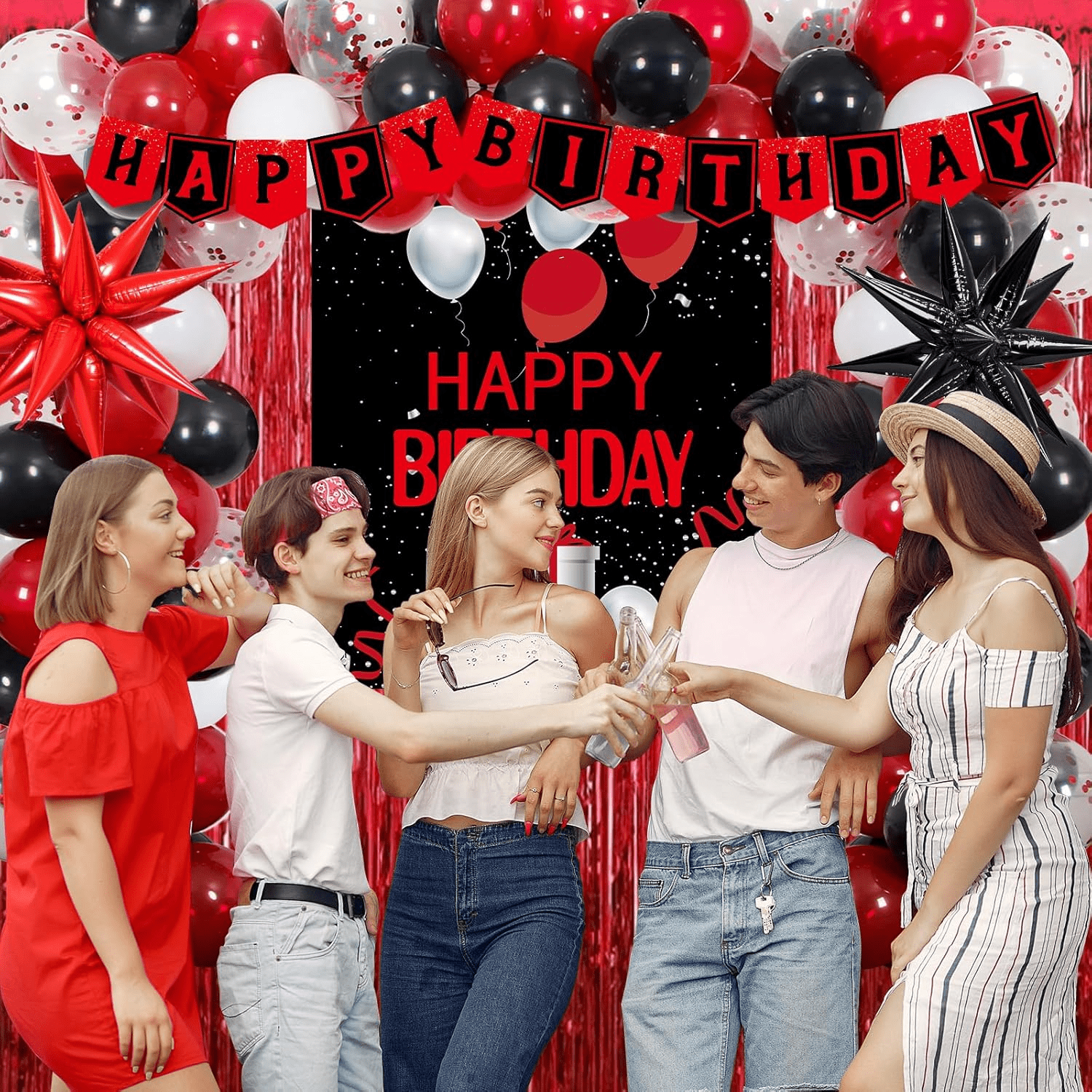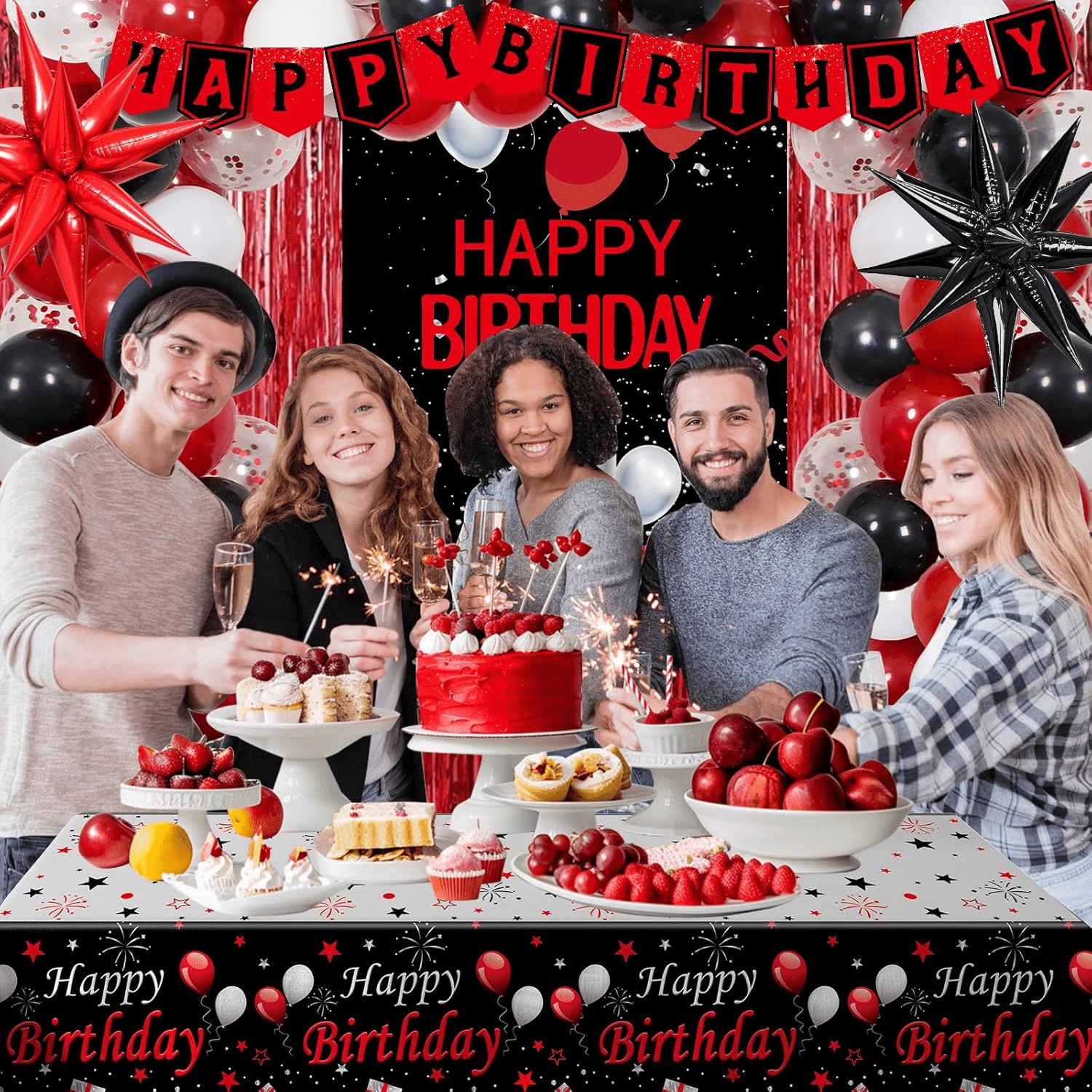 Red and Black Party Decorations, Red Birthday Decorations for Men Women, Happy Birthday Decorations for Boys Girls Bday Party Supplies
