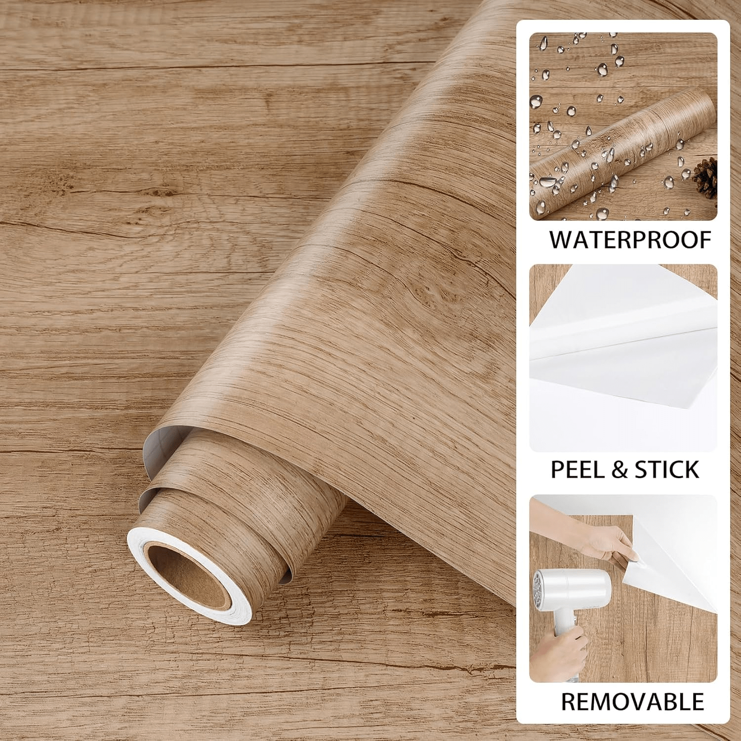 - 💧【Waterproof & Durable Wood Grain Contact Paper】 Built with a waterproof and oil-resistant finish, our wood grain contact paper is designed to withstand everyday spills and scratches, making it perfect for use in kitchens, bathrooms, and workspaces. Its durable surface ensures easy cleaning and long-lasting beauty.