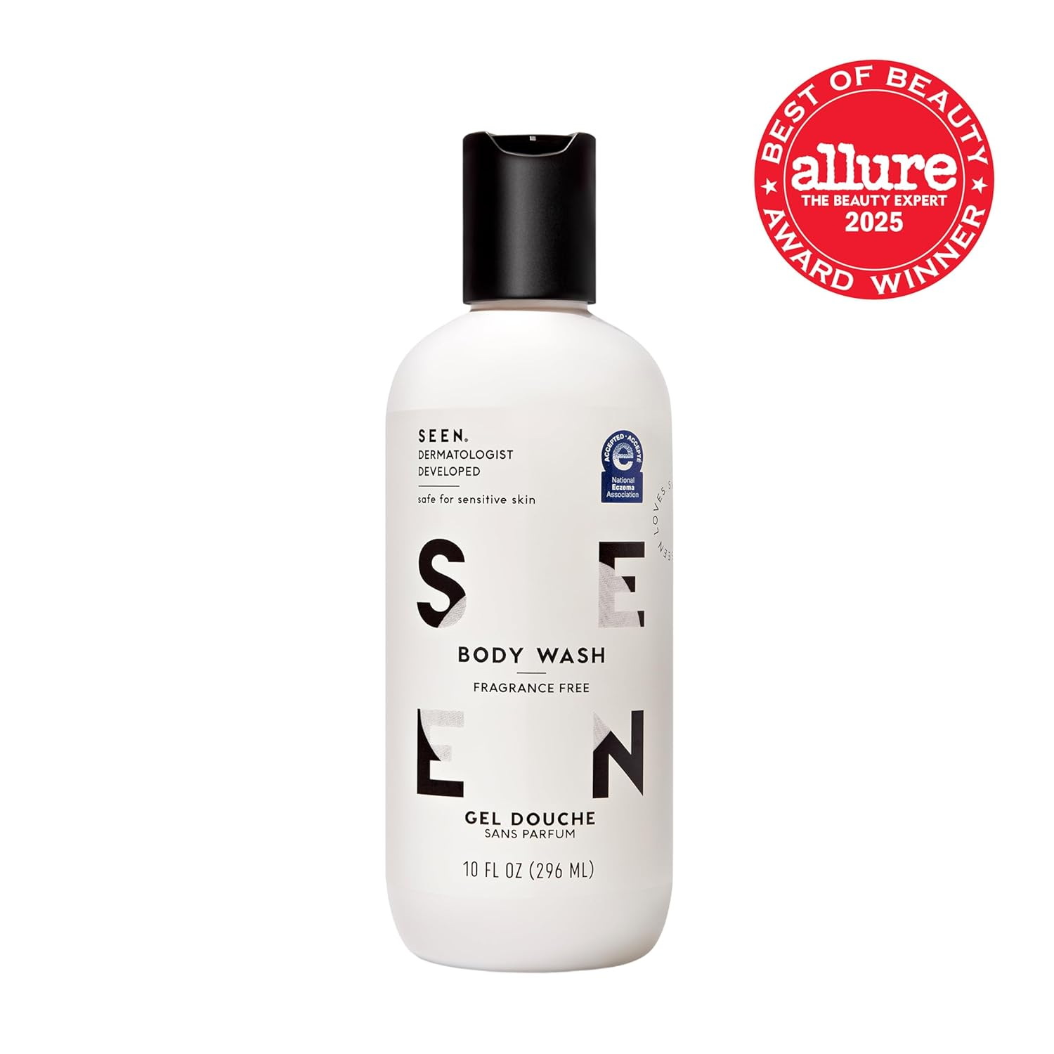 • Introducing SEEN Body Wash, Fragrance Free – a meticulously crafted body wash developed by dermatologists to cater to the needs of sensitive, eczema-prone, and acne-prone skin. This award-winning formula provides a rich, luxurious lather that effectively cleanses while ensuring your skin maintains its natural balance. Free from fragrances and harsh irritants, this body wash has been awarded the National Eczema Association Seal of Acceptance, making it an ideal choice for those seeking a gentle yet effective cleansing solution.