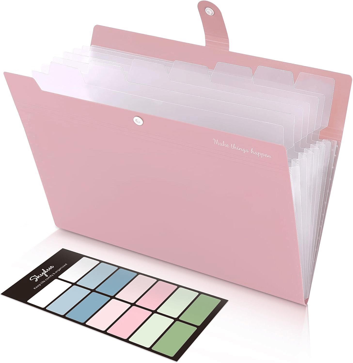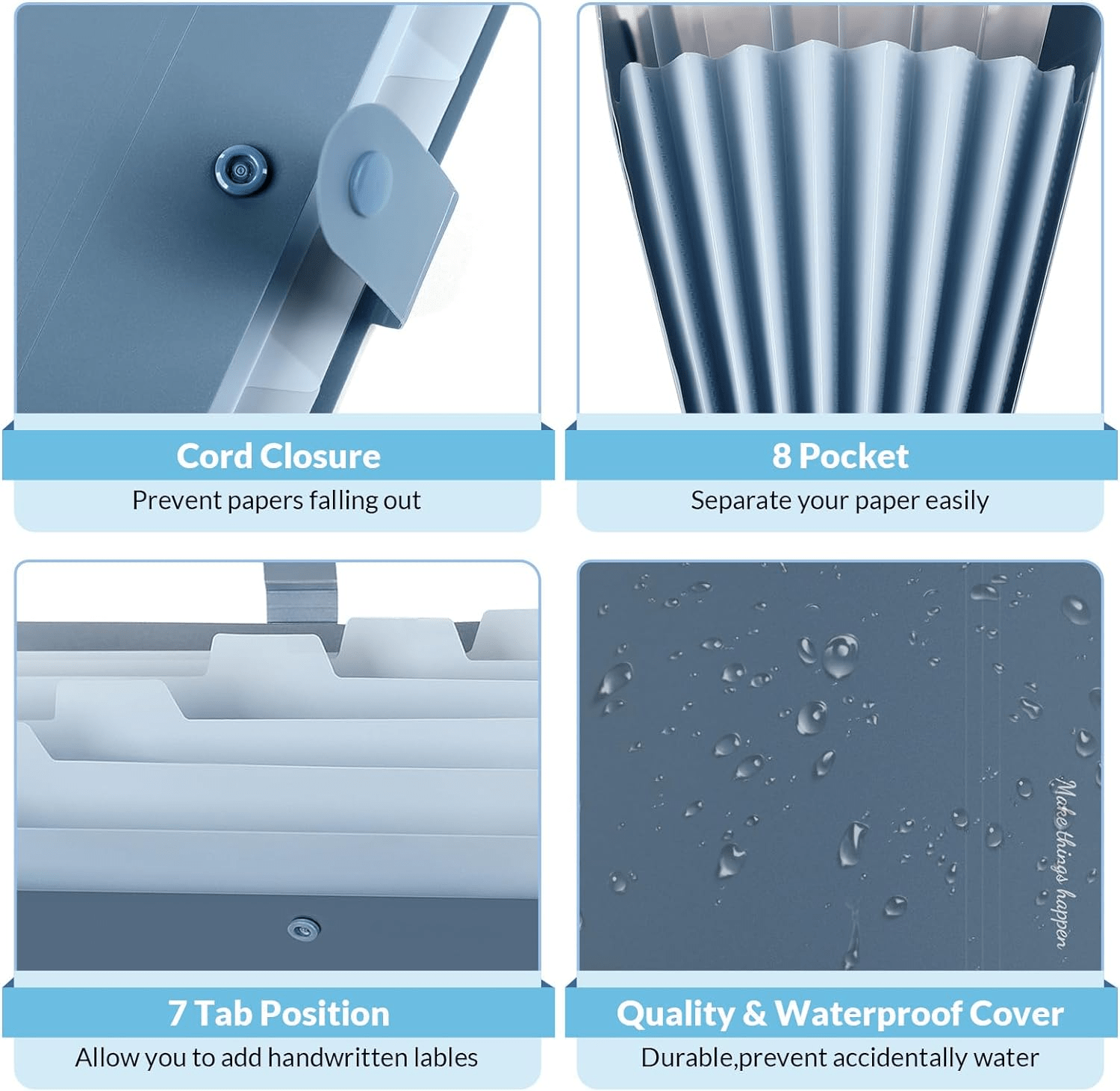 SKYDUE Expanding File Organizer with 8 Pockets, Accordion File Folders with Labels, Portable Document Paper Bill Receipt Organizer, Home College School Office Supplies, Letter Size, Blue