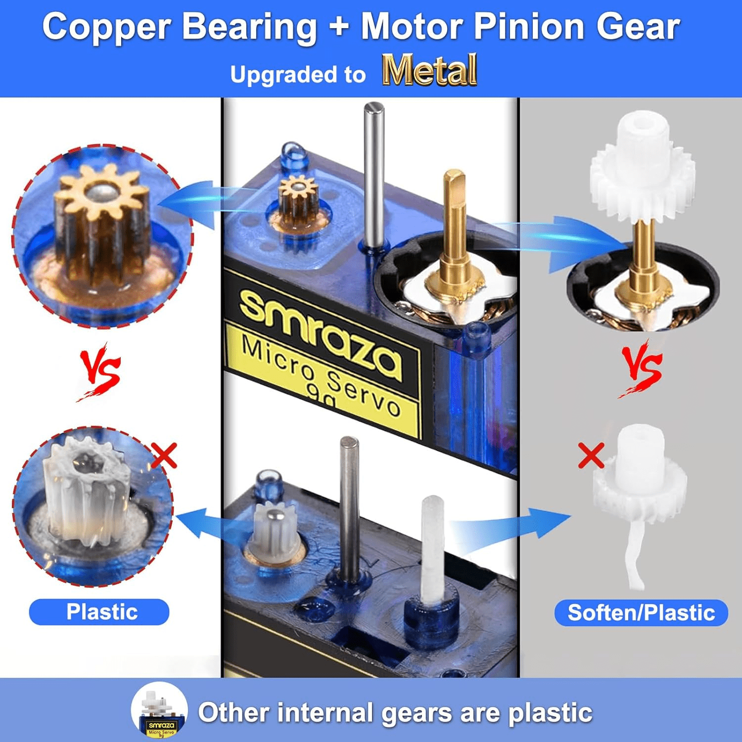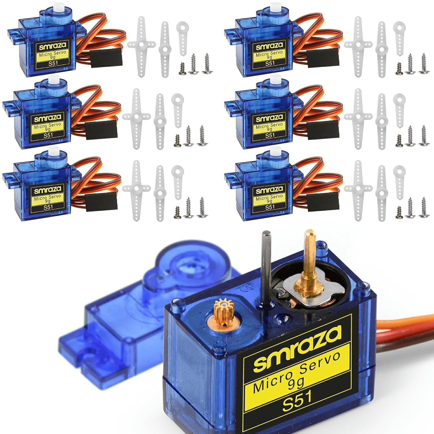 Smraza 6 Pcs SG90 9G Micro Servo Motor Kit (Metal Gear) for Arduino Projects, RC Robot, Robot Arm, Helicopter, Airplane, Car and Boat Control, Mini Servo Applications