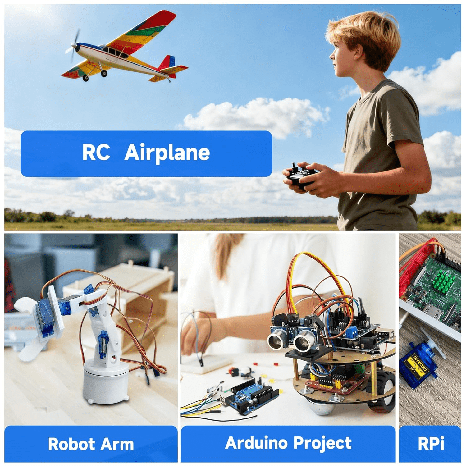 • The Smraza 6 Pcs SG90 9G Micro Servo Motor Kit is an exceptional choice for hobbyists and professionals alike. Engineered with a robust metal gear system, these micro servo motors provide outstanding resistance to tooth breakage and heat deformation, commonly found in plastic-gear alternatives. This durability makes them especially suitable for a variety of applications including micro-robots, robotic arms, RC helicopters, and other DIY projects where reliability is paramount.