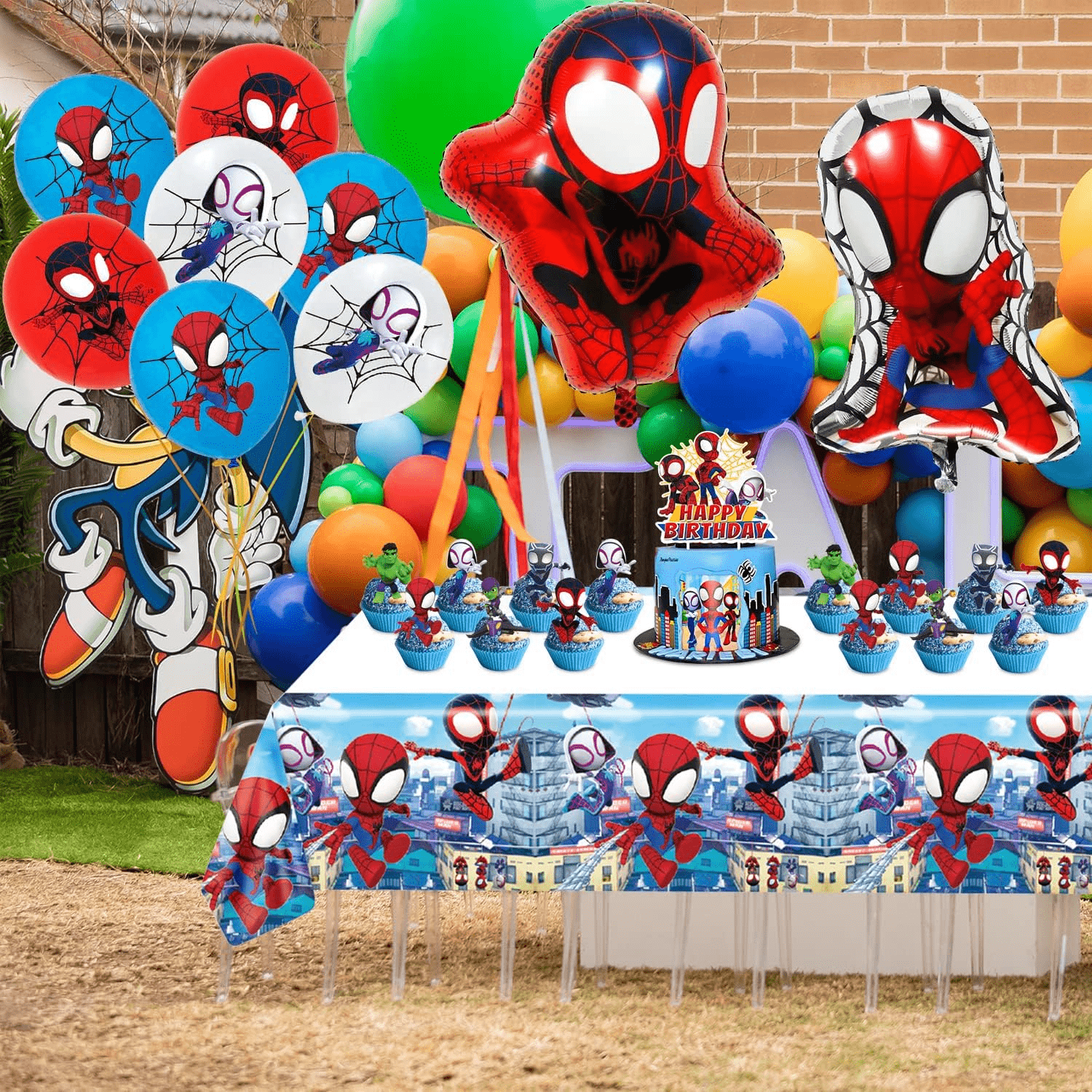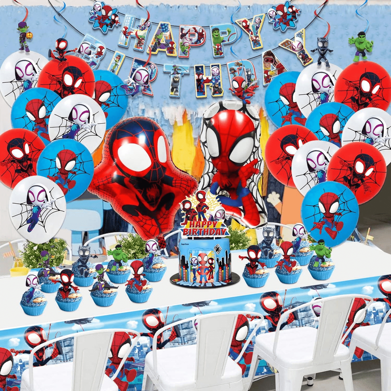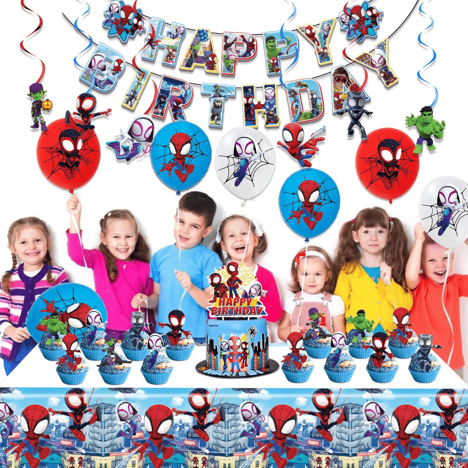 Spidey Birthday Decorations, Party Supplies Set Include Banner, Balloons, Hanging Swirls, Cake Cupcake Toppers, Tablecloth for Boys Girls Spidey Theme Party