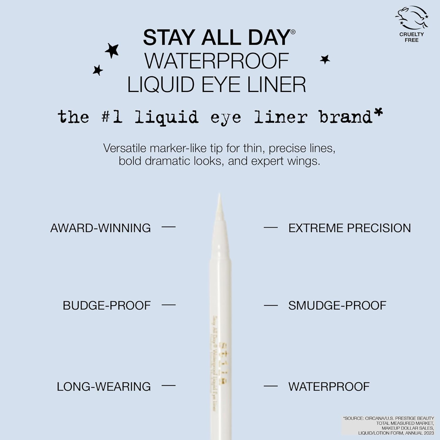 The Stila Waterproof Liquid Eye Liner is ideal for any occasion, from casual outings to more formal events. Its transfer-resistant properties mean you can enjoy a flawless appearance all day long. Simply glide the fine, marker-like tip along your lash line for a clean and sleek finish, and watch as it dries to a stunning satin finish. Create stunning cat eyes, winged looks, or understated elegance with ease, making this eyeliner an essential addition to your makeup collection.
