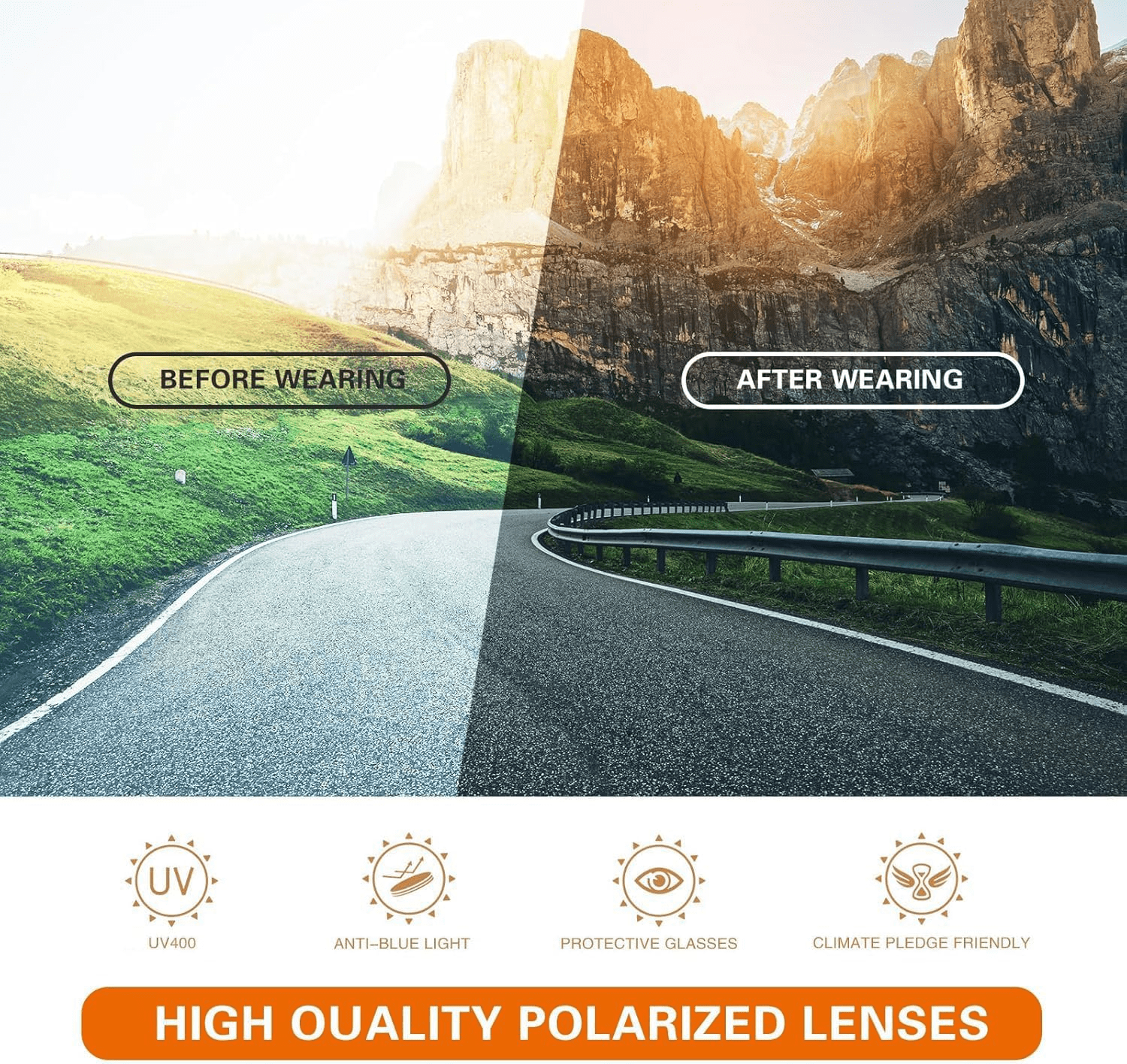• [High-Quality TR90 Frame & HD Polarized Lens]: Constructed from a flexible TR90 frame combined with scratch-resistant TAC lenses, these sports sunglasses achieve the ideal blend of durability and comfort. The TR90 material guarantees a secure fit during various activities, while the essence of scratch-resistant lenses ensures that your vision remains clear and unobstructed at all times.