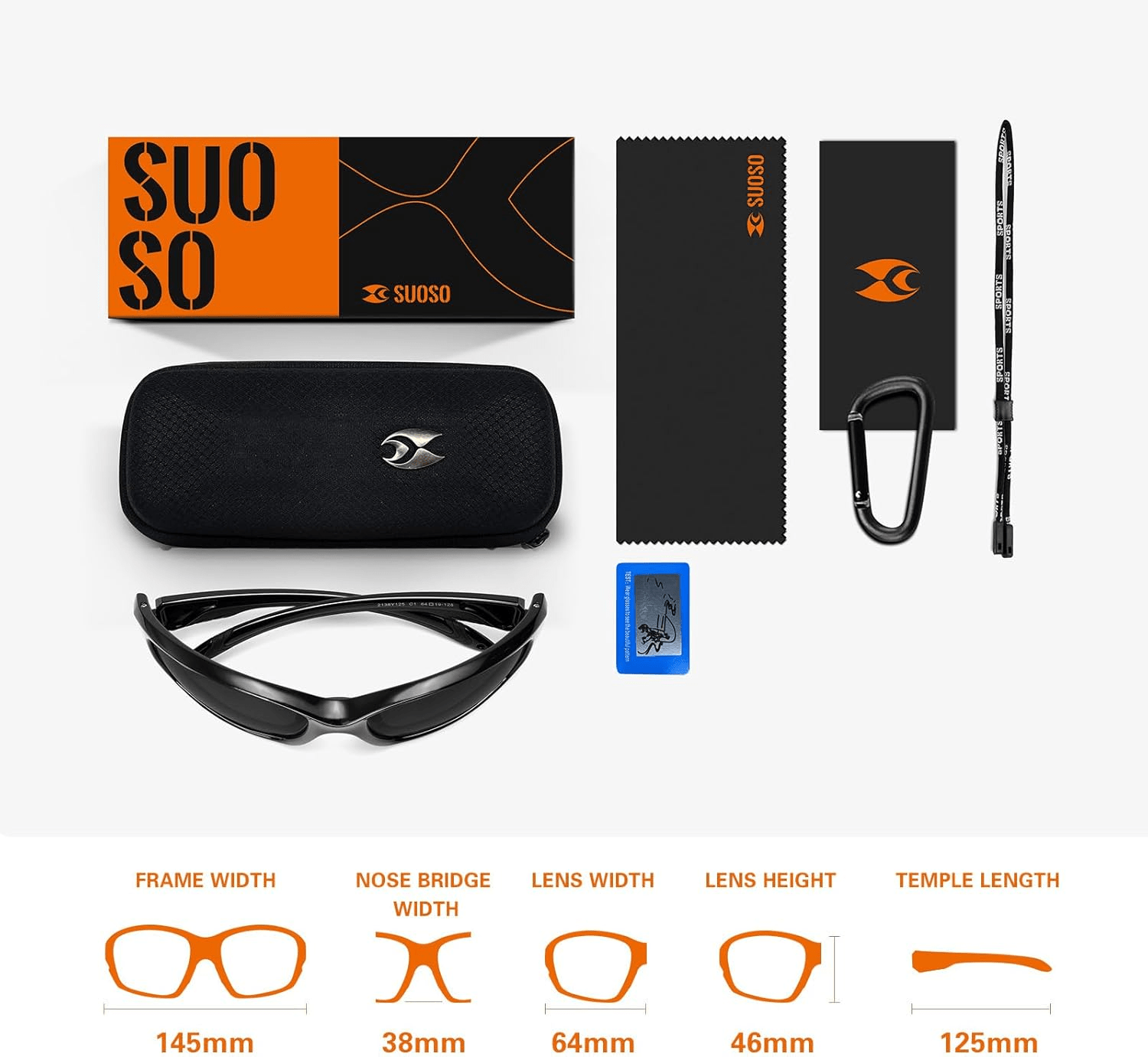 • [99% UV400 Protection]: The SUOSO Sports Polarized Sunglasses provide 99% UV400 protection, effectively shielding your eyes from harmful UVA and UVB rays. Whether you are trekking through nature or navigating city streets, these high-definition lenses enhance your visual experience by immersing you in vibrant colors and delivering unparalleled clarity.