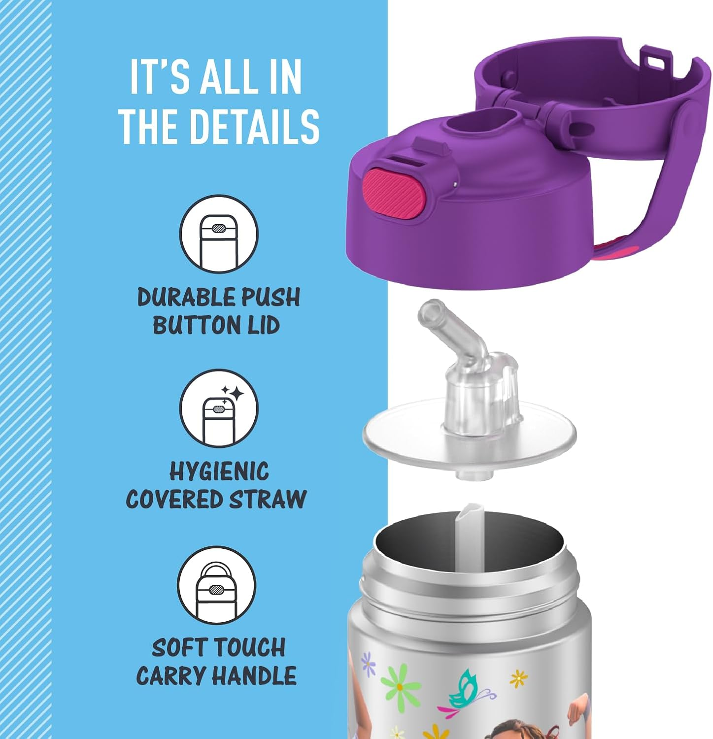 THERMOS FUNTAINER Water Bottle with Straw – 12 Ounce – Kids Stainless Steel Vacuum Insulated Water Bottle with Lid, Encanto