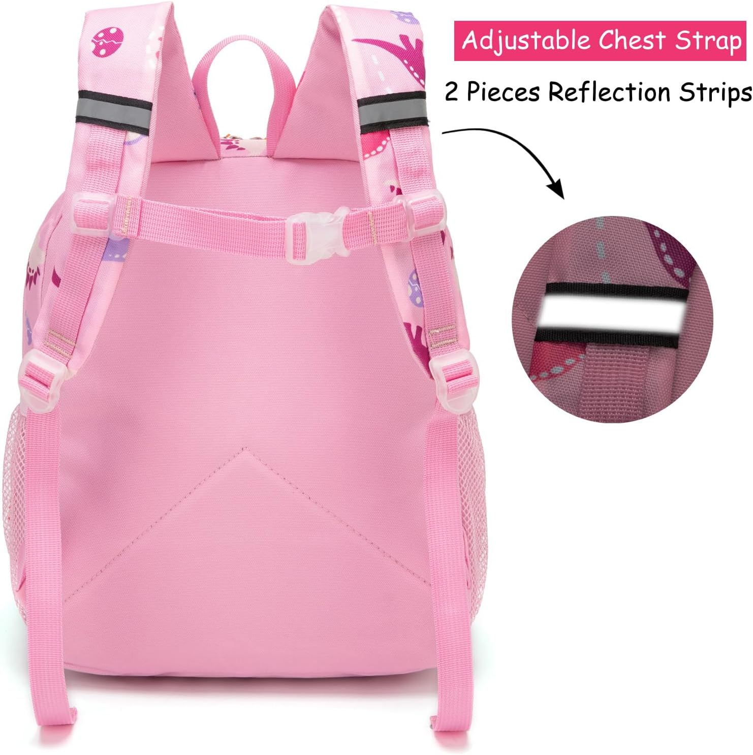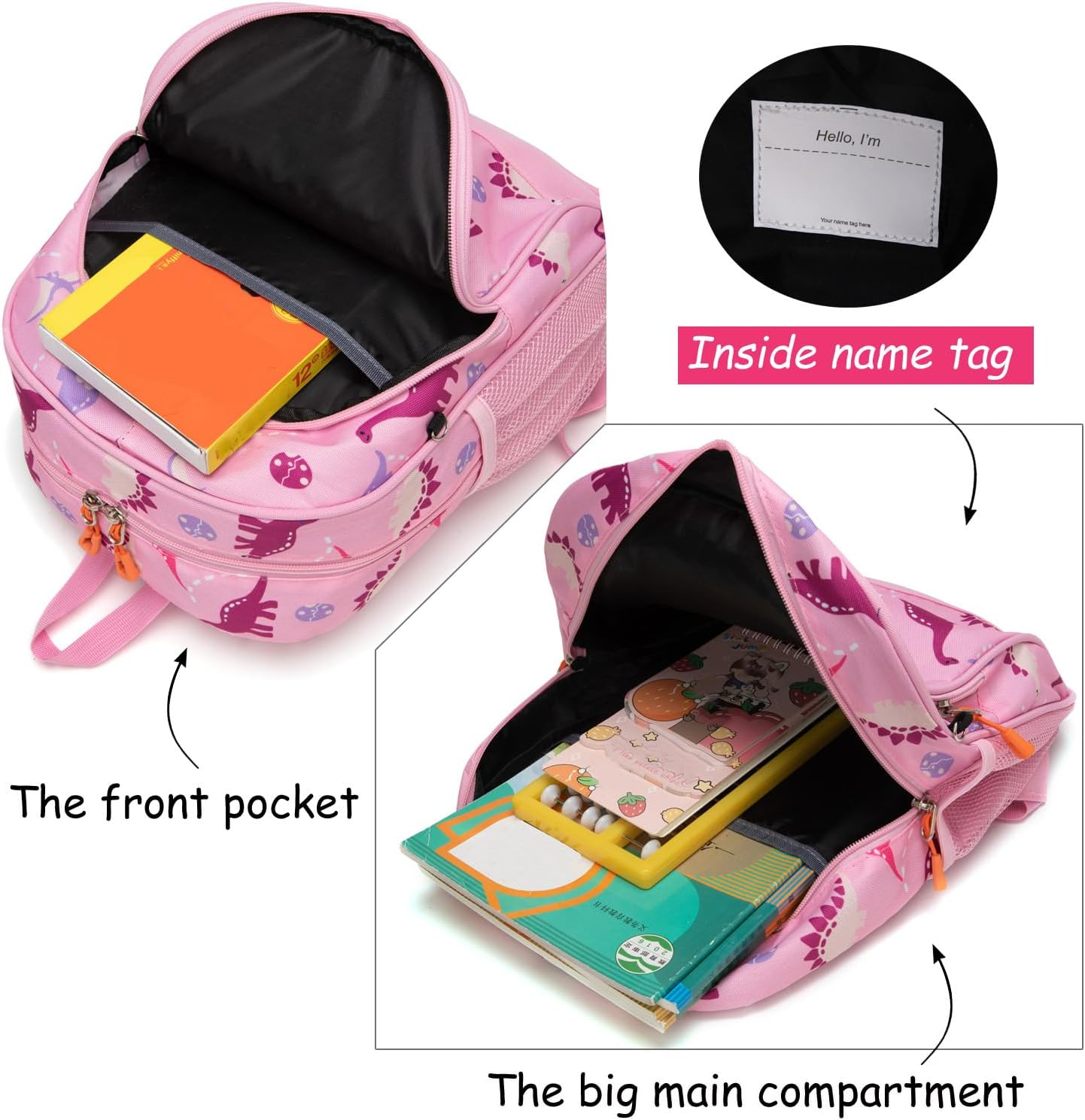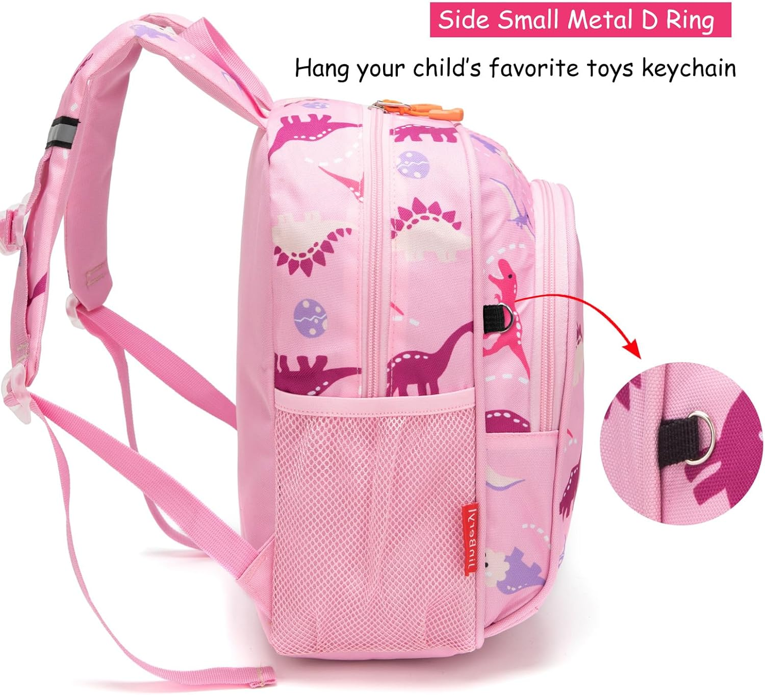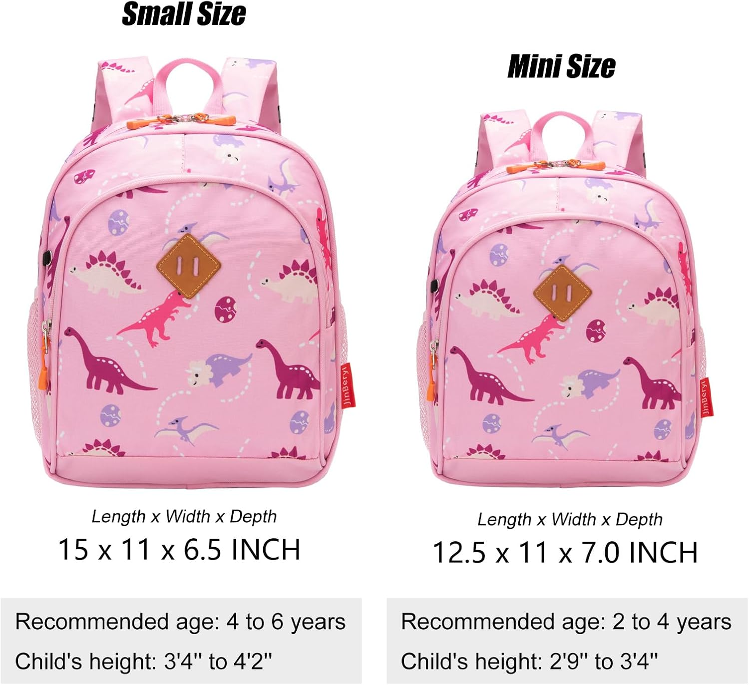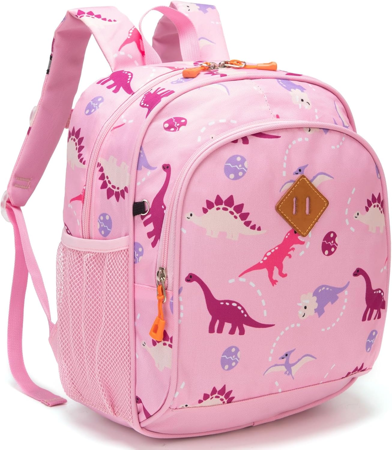 - This toddler backpack is a versatile choice for young children aged 2 to 7 years, making it perfect for preschool, kindergarten, daycare, or family outings. Its stylish dinosaur pink design appeals to little girls, while its functionality supports everyday use. The backpack features a spacious main compartment alongside multiple pockets, allowing your child to effortlessly organize their notebooks, crayons, snacks, and toys, ensuring they are prepared for any adventure, whether it’s at school or on the go.