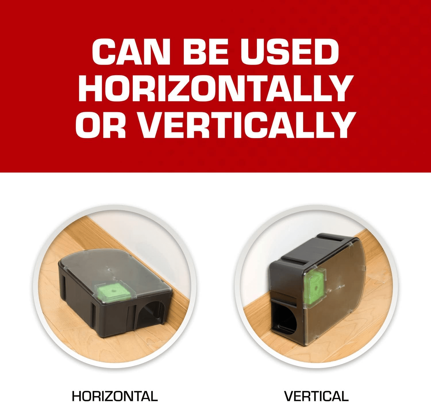 - Child and dog-resistant, these disposables feature a tamper-proof mechanism to keep your loved ones safe while still allowing easy access for rodents.
