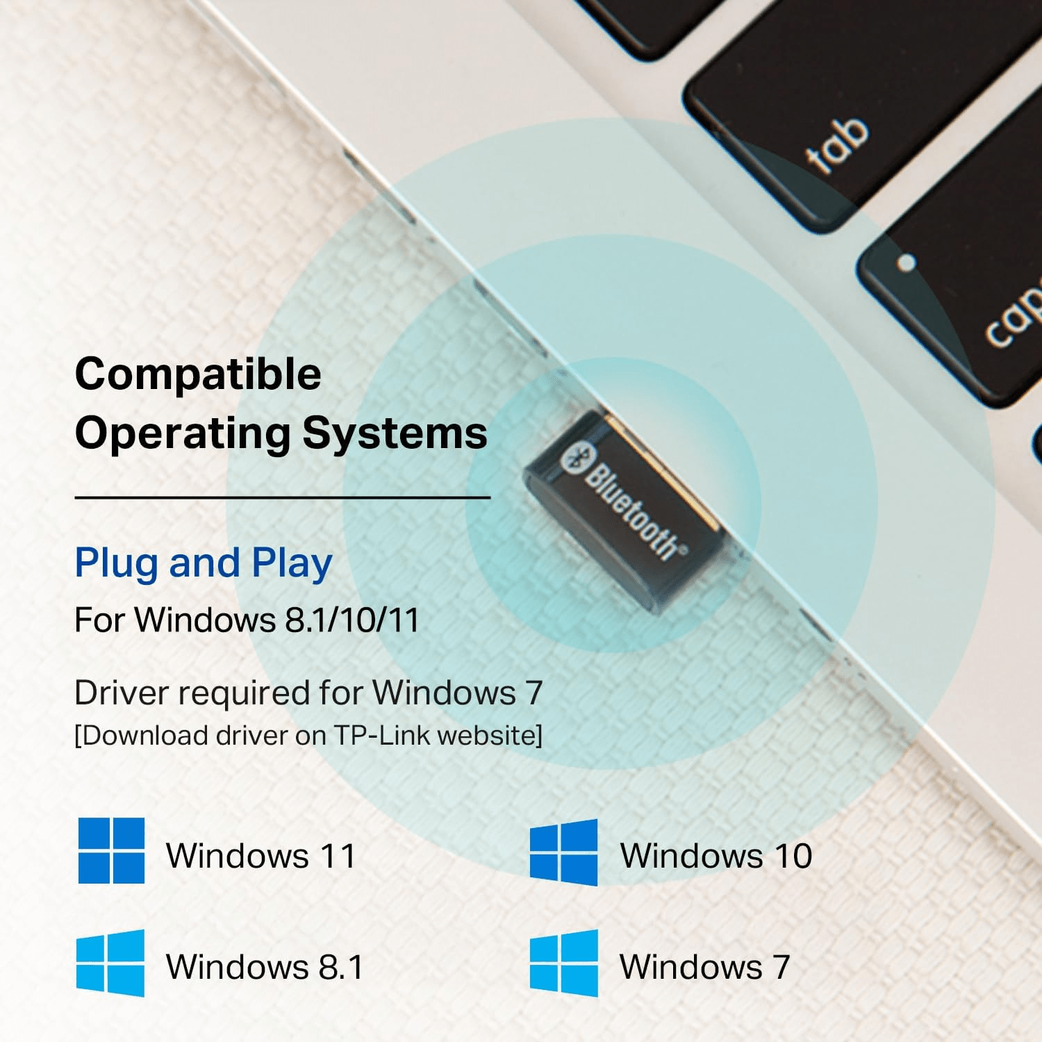 • Plug & Play with Free Driver Support – Plug and play for Windows 8.1/10/11 (internet required). Supports Win7 (driver required and can be downloaded from the website for free). Download the latest driver from the TP-Link website to utilize Bluetooth 5.4.
