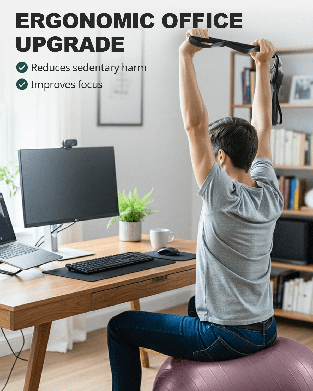 • Transform your workplace by utilizing the Trideer Exercise Ball as an alternative seating option. This innovative solution not only promotes active sitting by encouraging core engagement but also aids in improving posture and alleviating back discomfort caused by prolonged hours of sitting. Optimize your focus and productivity during the workday while simultaneously incorporating fitness into your daily life.