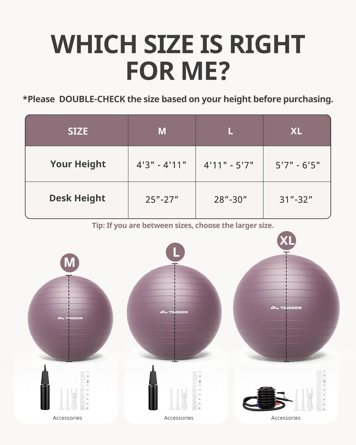 Trideer Exercise Ball Yoga Ball,Office Seating & Balance Ball Chair, Stability Ball for Pilates, Physical Therapy,Core Training & Balance Improvement & Stretching