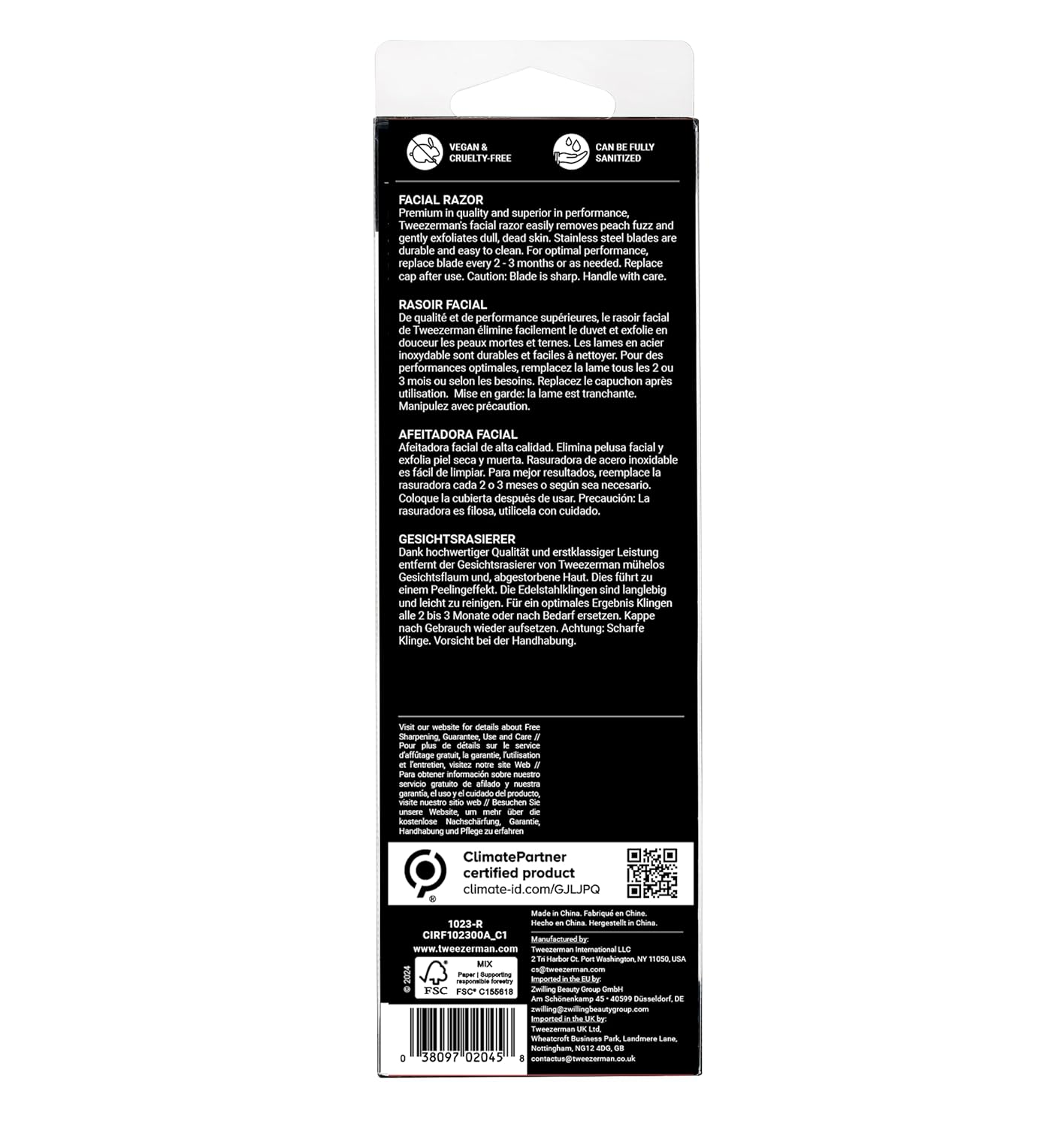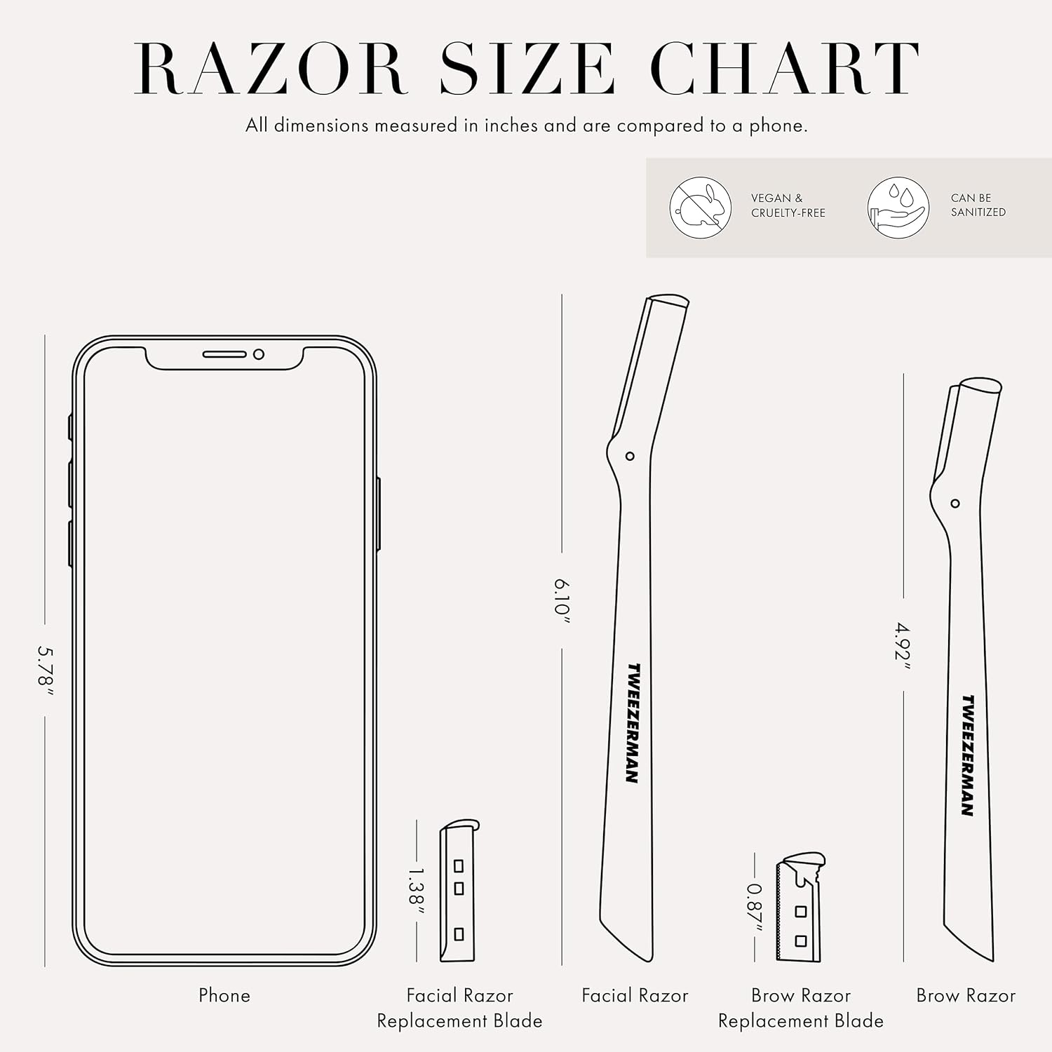 • Recognized as an ‘Allure Best of Beauty 2023 Winner’, the Tweezerman Stainless Steel Facial Razor effectively removes peach fuzz while offering gentle exfoliation of dull skin. This dual-action approach not only enhances your skin’s texture but also creates a flawless canvas for makeup application, making it an essential tool in any skincare routine.