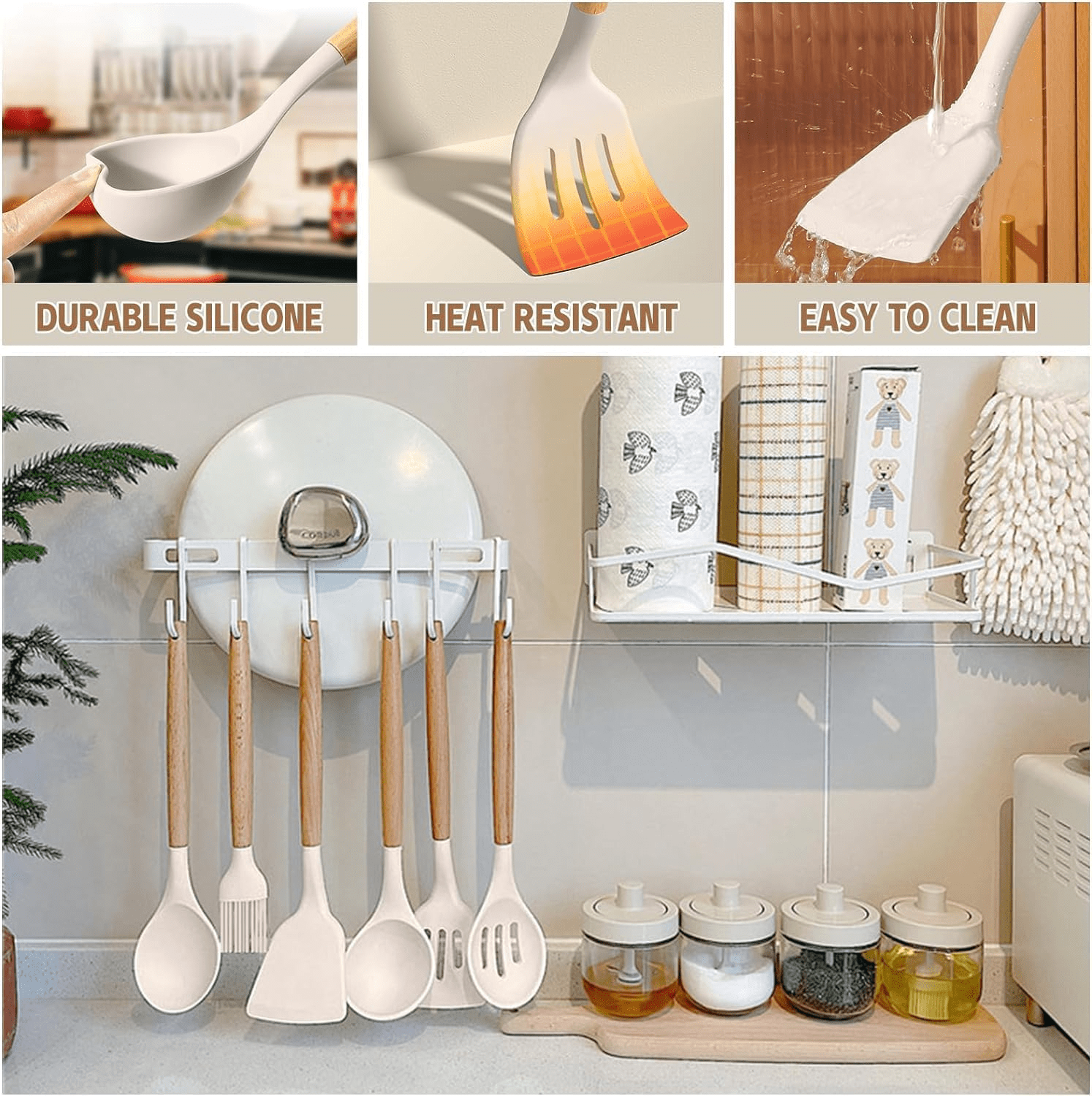 Each silicone utensil comes with a hanging hole for easy overhead storage, helping to keep your countertop organized and clutter-free.