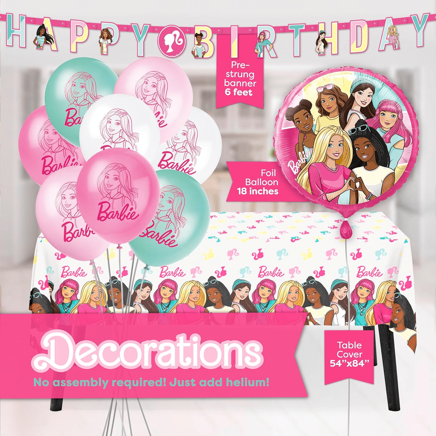 - JOIN Barbie in throwing your child a fabulous birthday party! This Barbie party decorations kit contains everything you need for easy, fast setup and takedown.