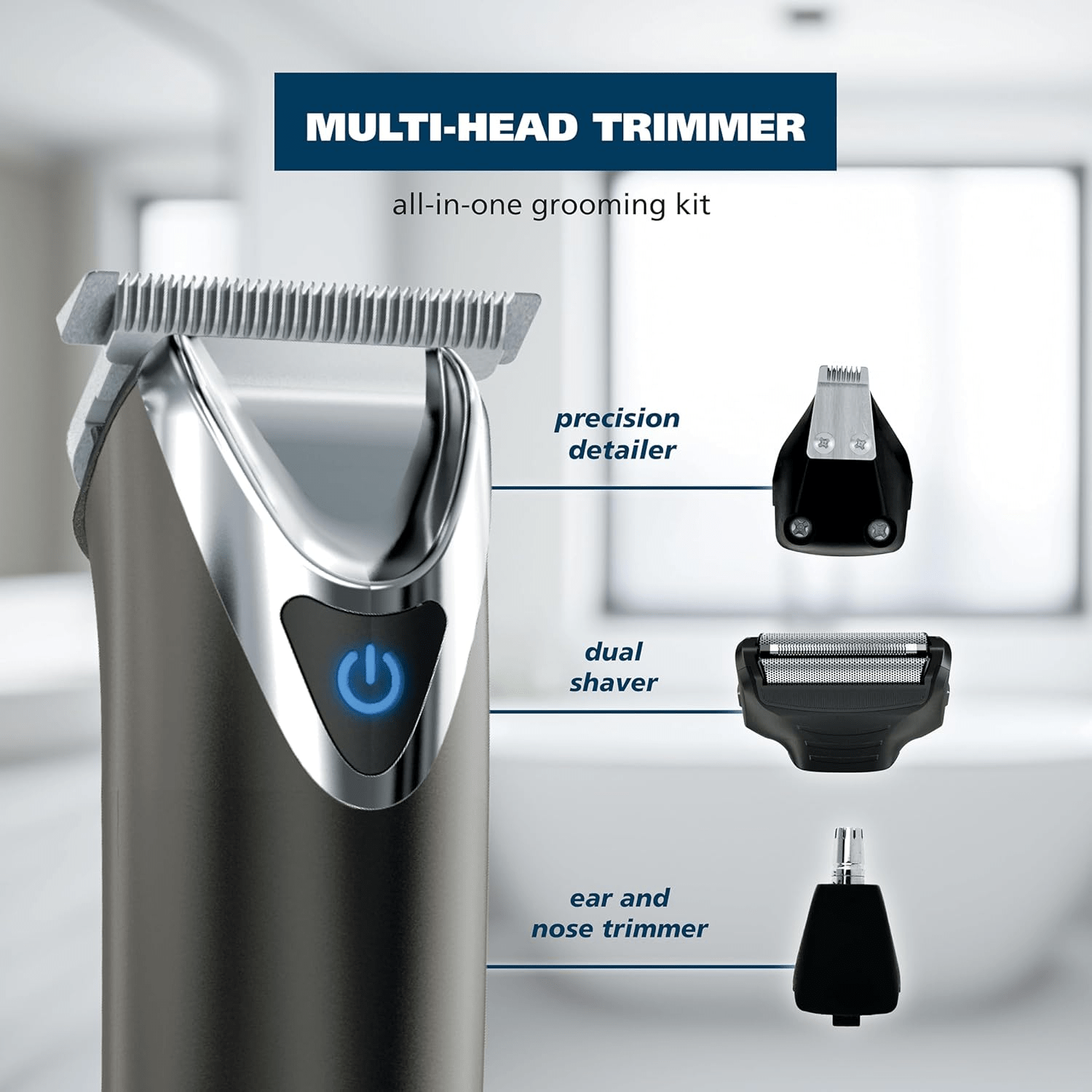 - Hygienic Grooming – This innovative grooming kit includes a specialized rotary ear and nose trimmer head to ensure a hygienic experience, effectively keeping nose and ear hair removal separated, while the dual foil shaver head provides an ultra-close shave for a polished finish.