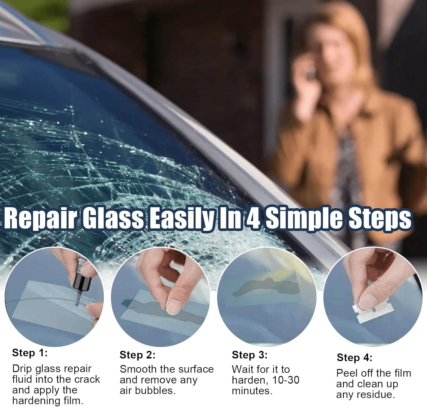 - 【Fixes Multiple Crack Types】This versatile repair kit is designed to tackle a wide range of glass damage types, including bullseye, star-shaped, and spiderweb cracks. Made from high-clarity, optical-grade resin, it seamlessly bonds with the glass, ensuring that visual clarity and structural integrity are maintained following the repair.