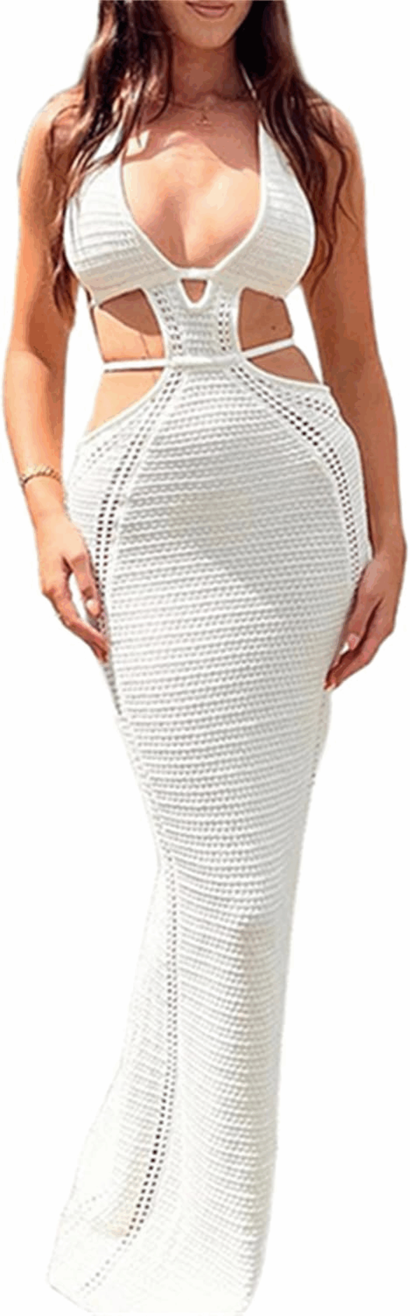 CALEBGAR Women’s Hollow Out Knitted Maxi Dress – Halter, Backless, Bodycon Fit | Sexy Summer 2025 Beach & Club Look | Now on Brundo.net