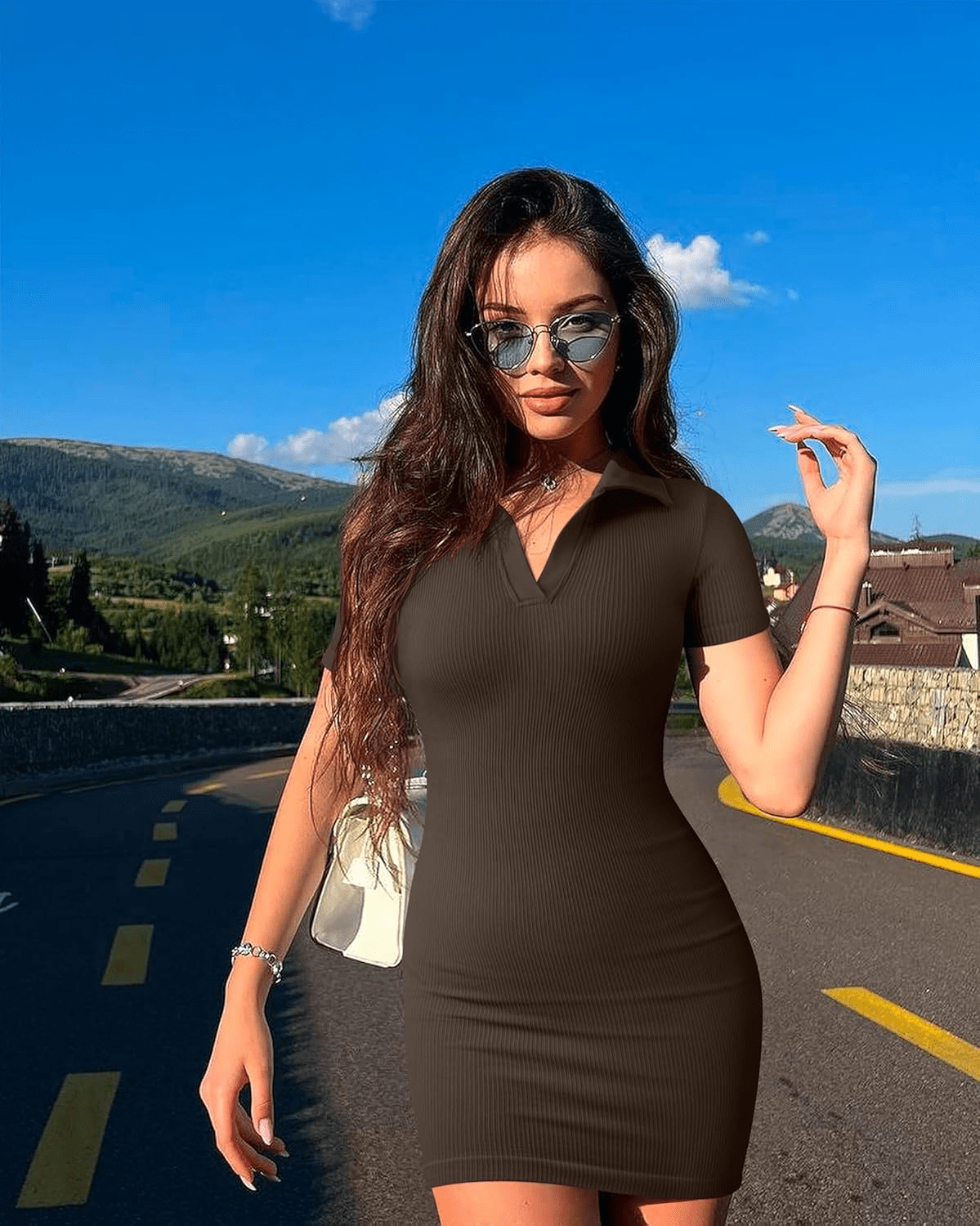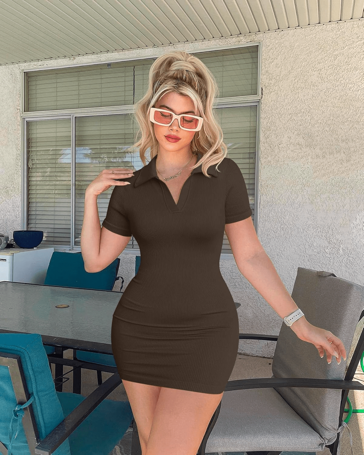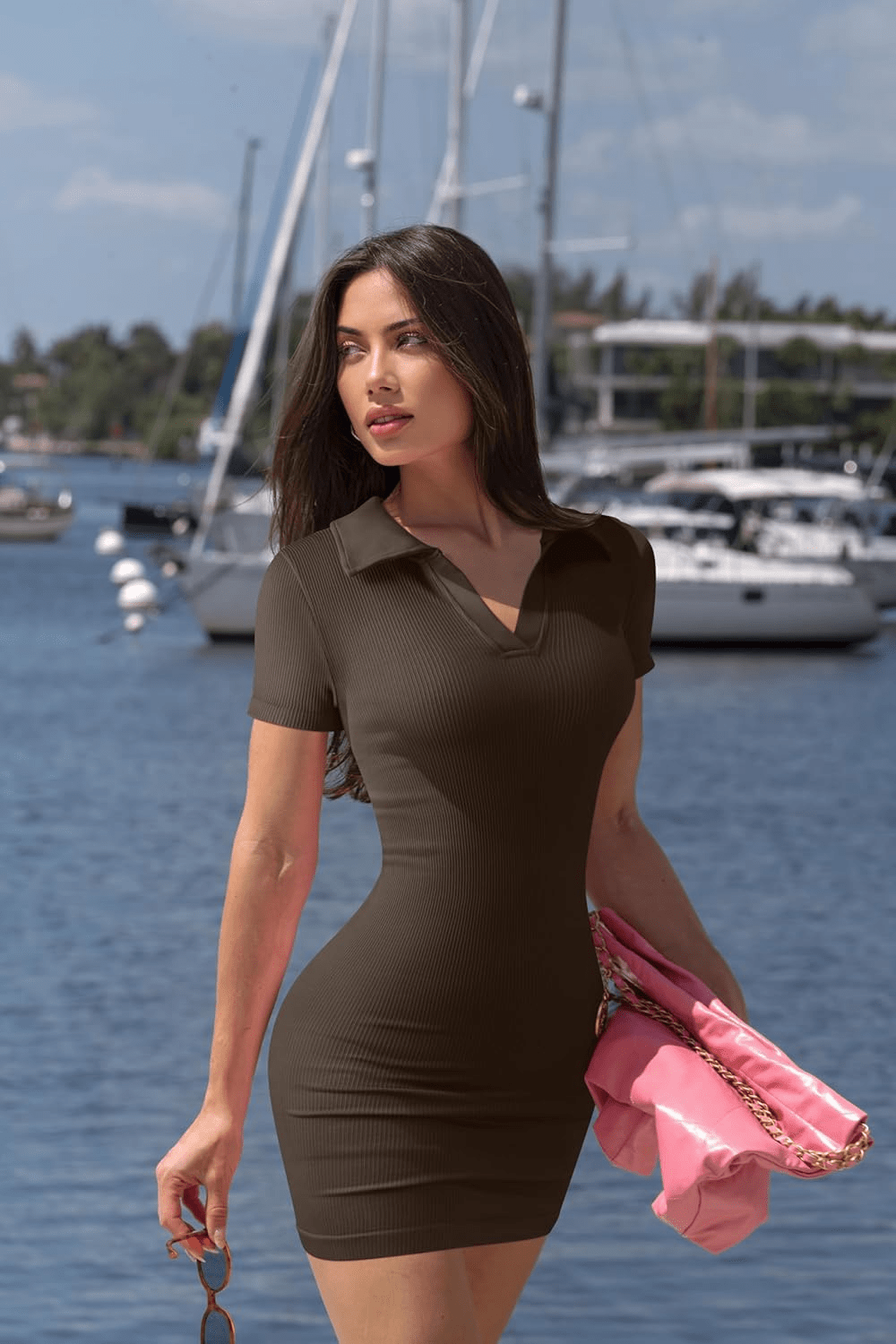Women’s Ribbed Tummy Control Bodycon Mini Dress – Short Sleeve, Slim Fit | Sexy & Comfy | Available on Brundo.net