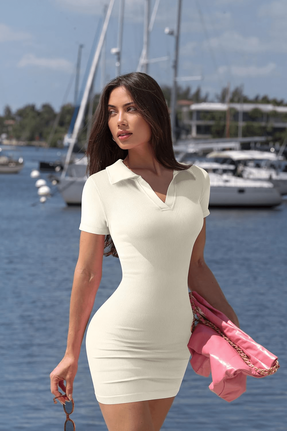 Women’s Ribbed Short Sleeve Bodycon Mini Dress – Tummy Control Fit | Casual & Sexy Everyday Look | Now on Brundo.net