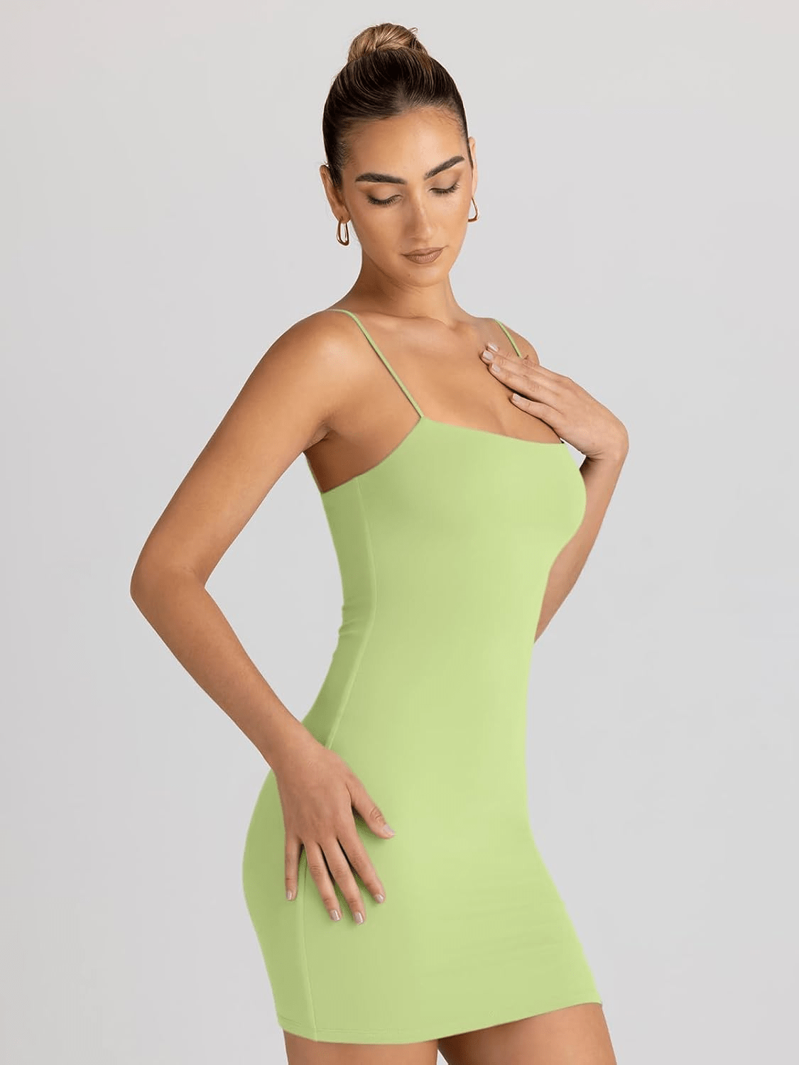 Step into the season with confidence and charm in the LILLUSORY Spaghetti Strap Bodycon Mini Dress. Crafted from a soft and breathable blend of 85% Nylon and 15% Spandex, this lightweight and stretchy dress hugs your curves beautifully while keeping you cool.