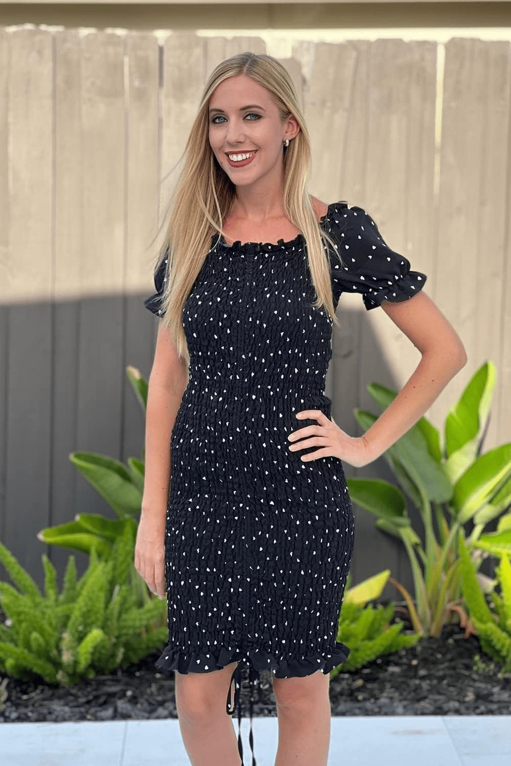PRETTYGARDEN Womens Smocked Dress Cold Shoulder Fitted Dress