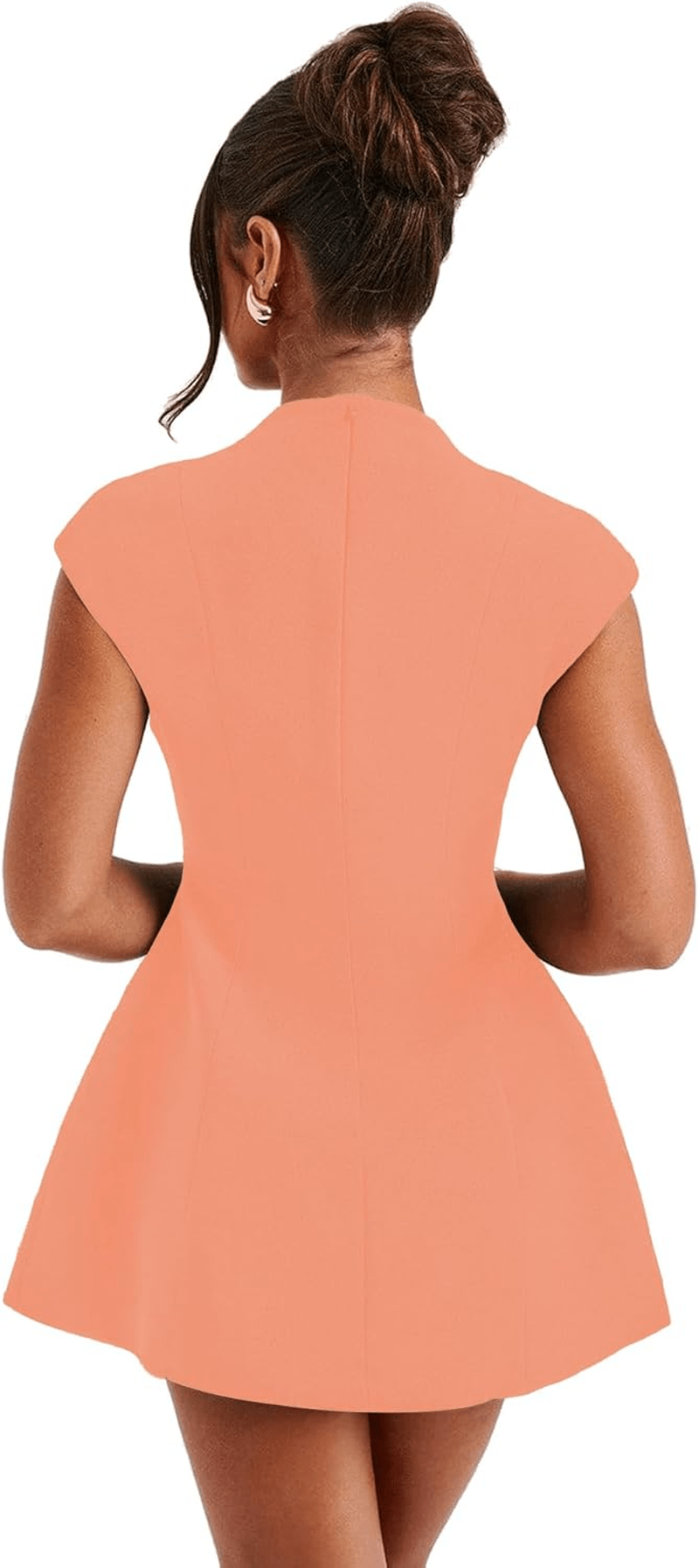 Women’s Dress V-Neck Sleeveless Zip Up Suit Style Dress