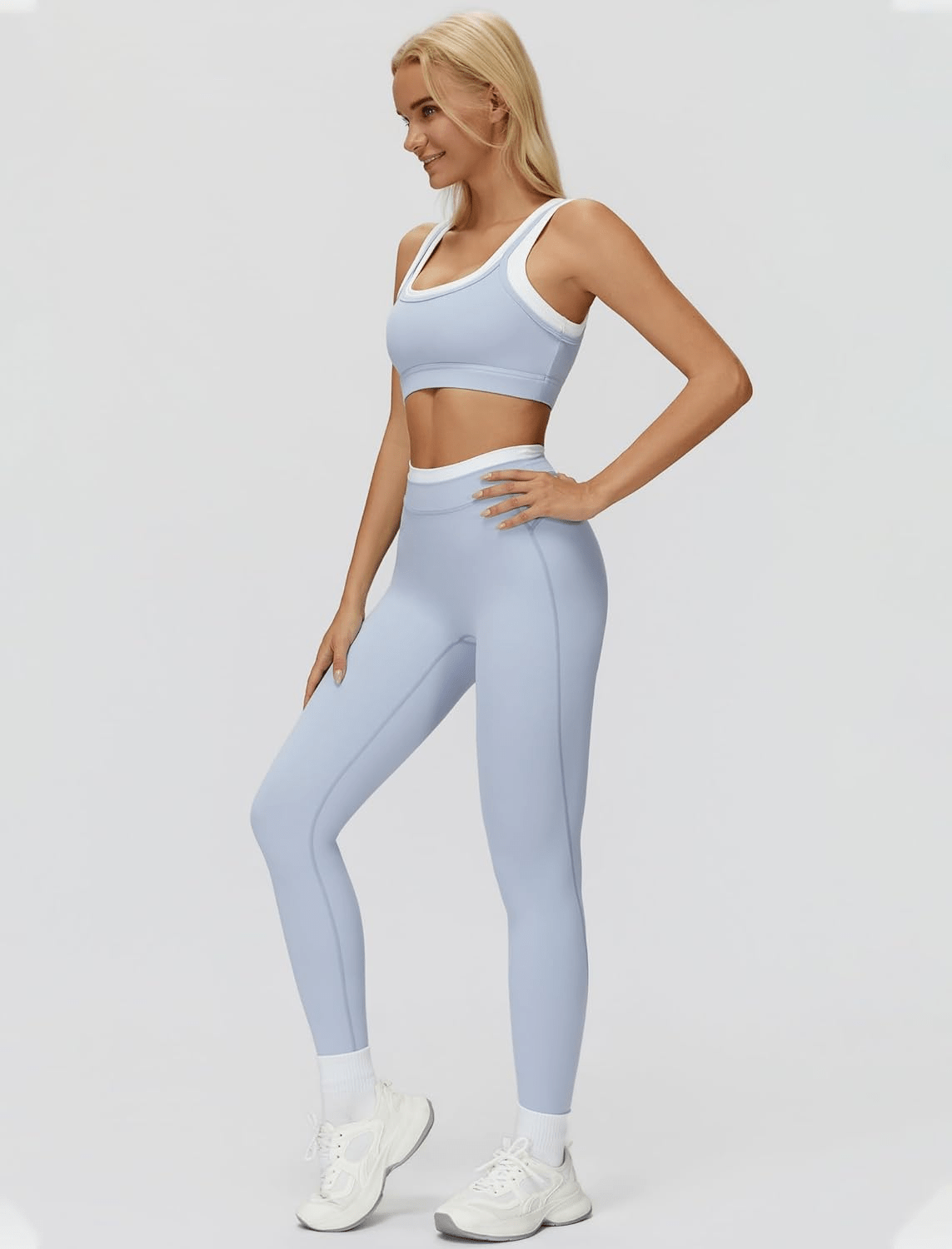Elevate your workout wardrobe with our Women’s Workout Set, featuring a stylish two-piece U-back color block sports bra paired with high-waisted leggings. This matching gym outfit is designed for maximum comfort and performance, making it the perfect choice for fitness enthusiasts engaged in activities such as yoga, Pilates, and high-intensity training. The U-back design of the sports bra allows for a full range of motion while providing essential support, ensuring you can move freely and confidently during every session.