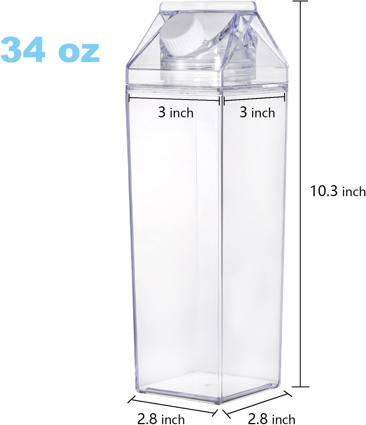 - The Yarlung 4 Pack 34 Oz Milk Carton Water Bottles offer a practical and stylish solution for hydration on-the-go. Designed with outdoor enthusiasts in mind, these bottles are perfect for travel, camping, and various sports activities. With a capacity of 34 oz (1 liter), they provide ample hydration and are conveniently sized at 3 inches wide by 3 inches long, and 10 inches tall, allowing them to fit comfortably in any backpack or car cup holder. Their lightweight construction enhances portability, making them an essential addition to your outdoor gear.